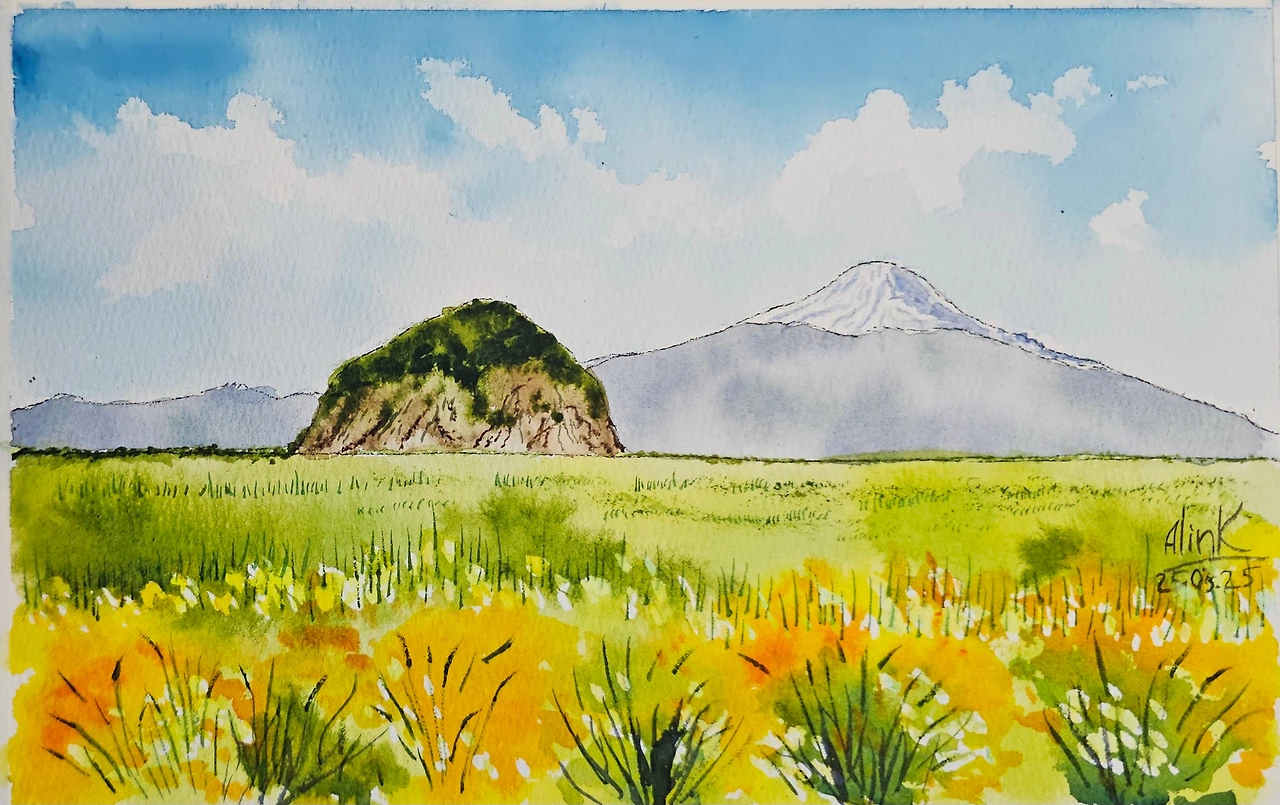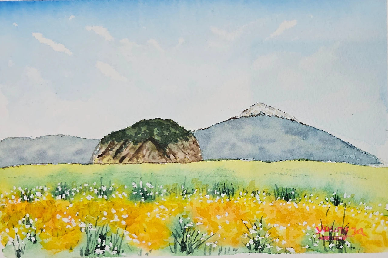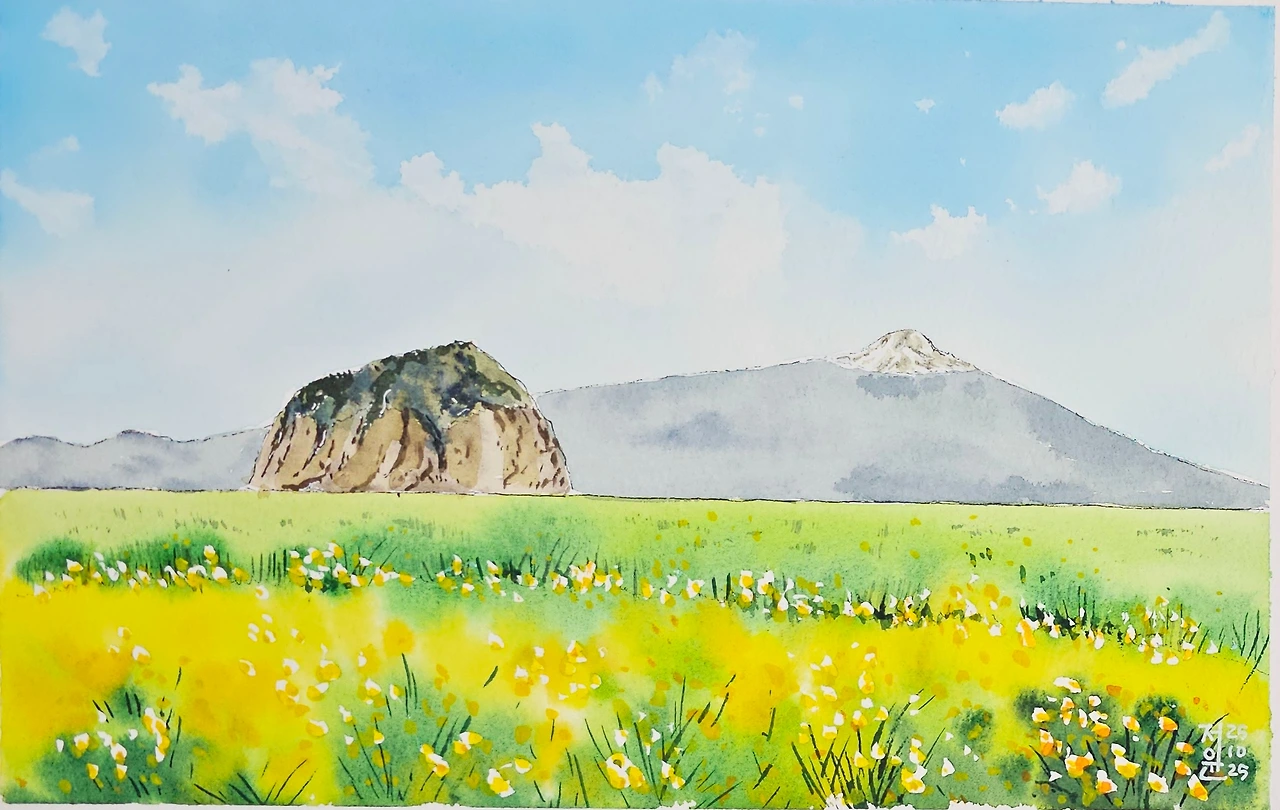이번 주 평생교육원 드로잉 과제는 유채꽃 풍경의 제주도입니다.