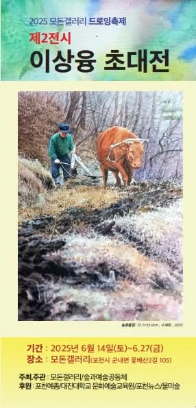 2025 모돈갤러리 드로잉축제 제2전시로 이상융 작가의 초대전이 진행되고 있습니다.(6.27까지) 세밀한 디테일을 잘 묘사하고 있는 수채화 작가로 다양한 풍경과 농촌의 풍경, 그리고 소나무 작품들을 선보이고 있습니다. 전시는 6.27(금) 오전까지 이어집니다. 월, 화요일은 휴관입니다.