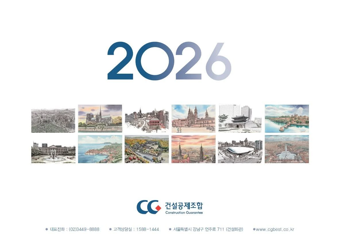 저의 그림으로 건설공제조합의 2026년도 캘린더가 제작되었습니다. 조합에서 저의 페북에 올려진 그림들 중 13컷을 골라 탁상용 캘린더로 제작하였습니다. 표지와 각 달의 그림들을 올려봅니다.