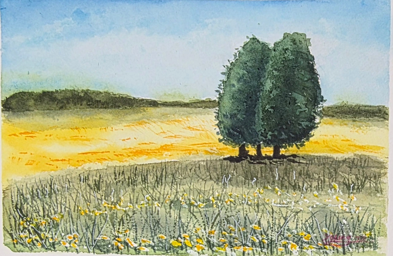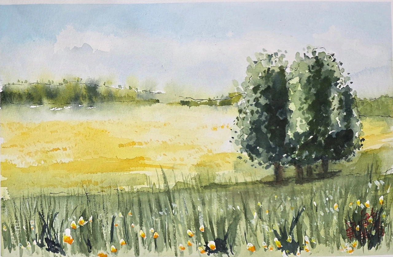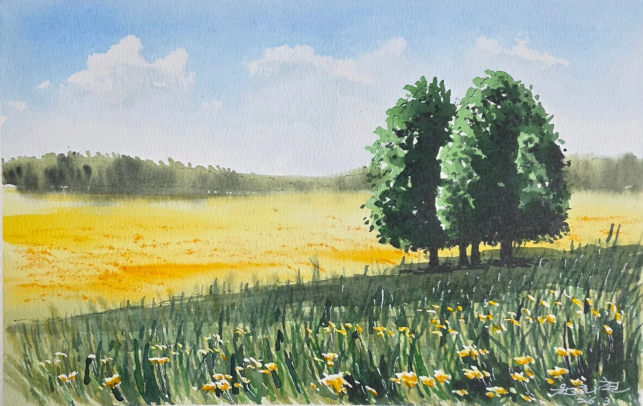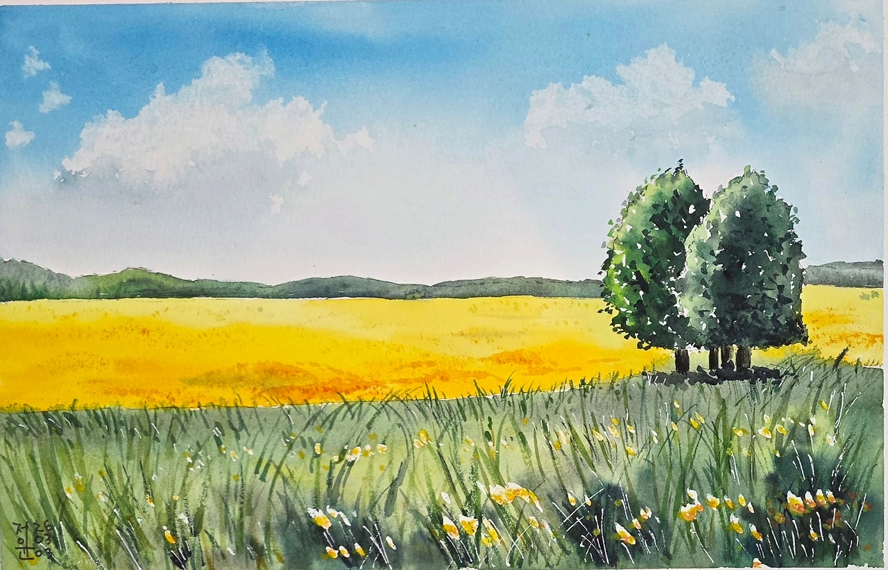 평생교육원 봄학기가 시작되었습니다. 봄 분위기에 맞게 나무가 있는 전원의 풍경을 수강생들과 함께 그려보았습니다.