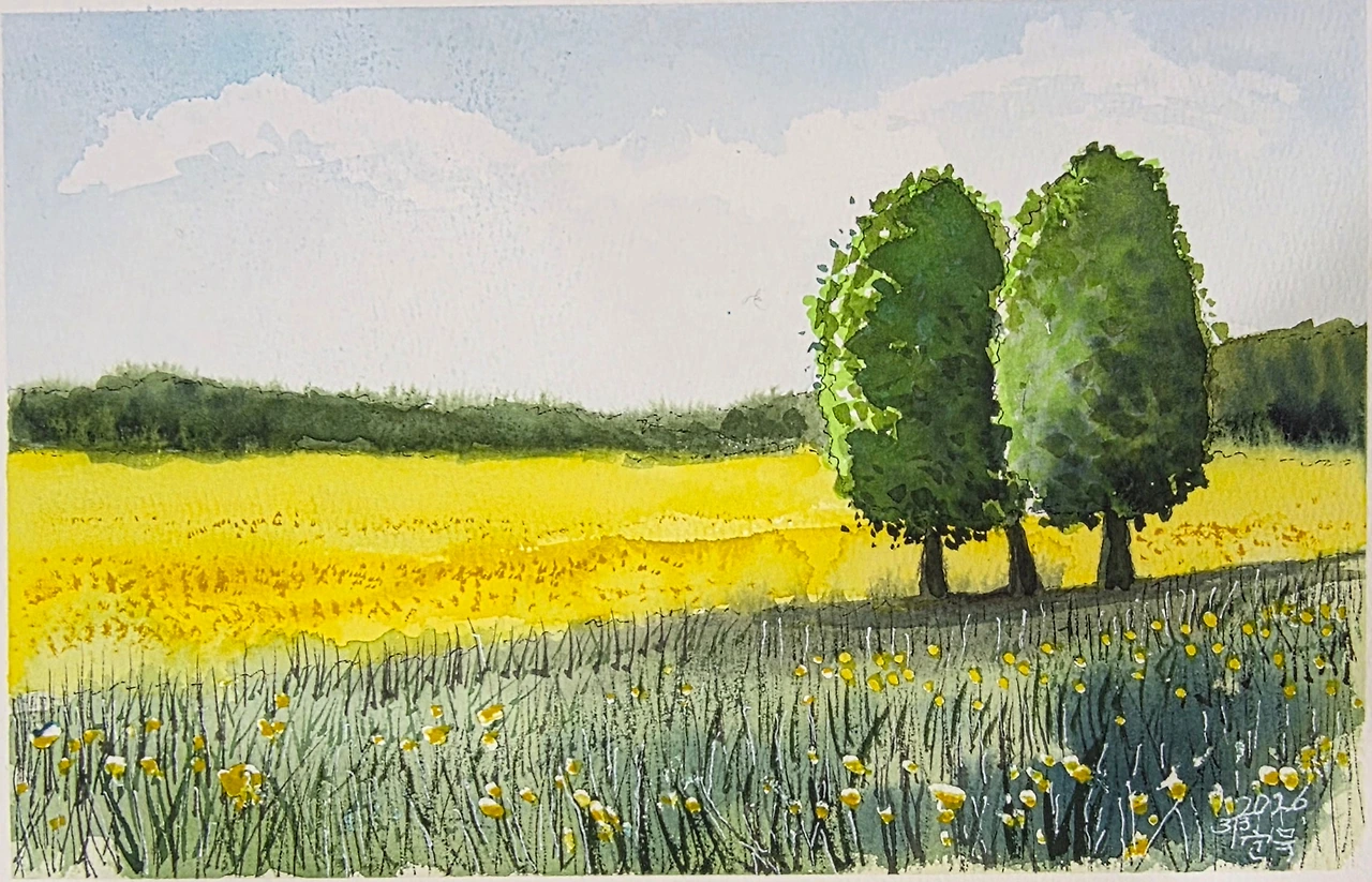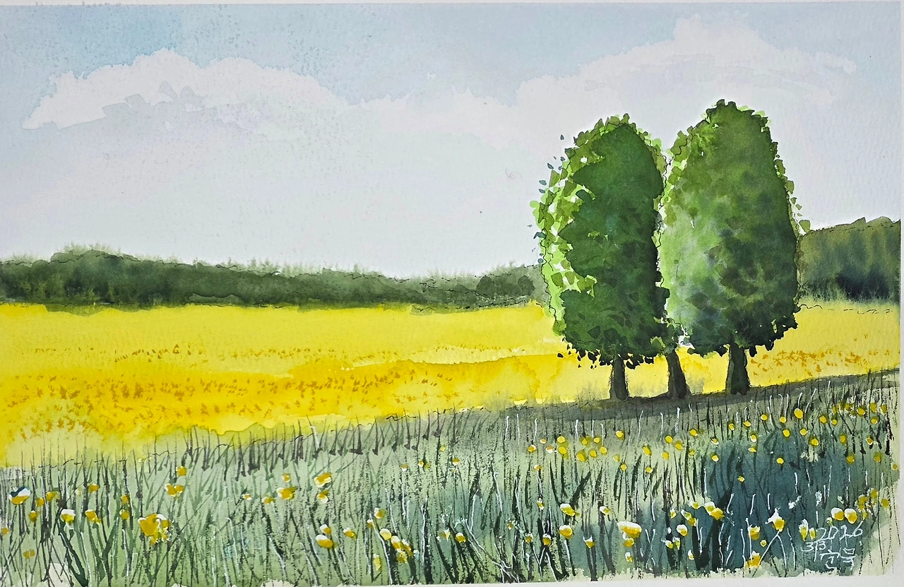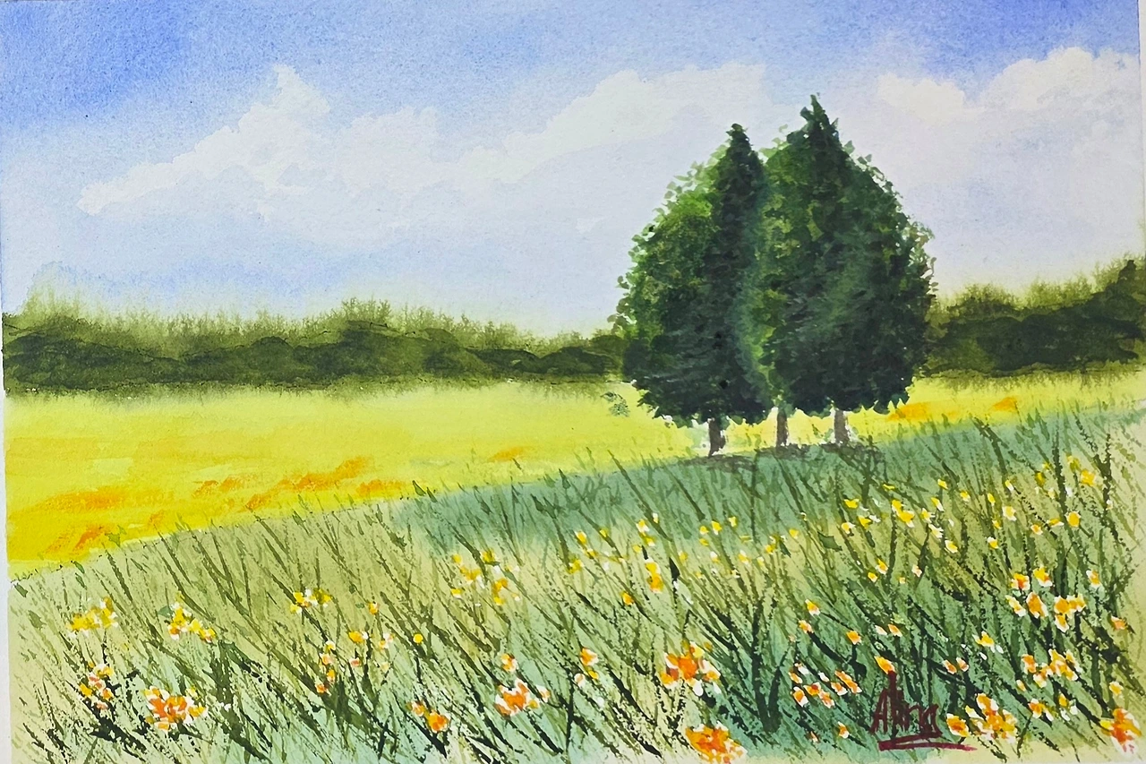 평생교육원 봄학기가 시작되었습니다. 봄 분위기에 맞게 나무가 있는 전원의 풍경을 수강생들과 함께 그려보았습니다.