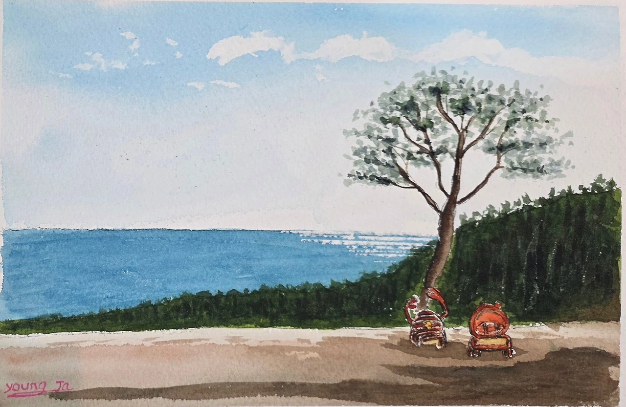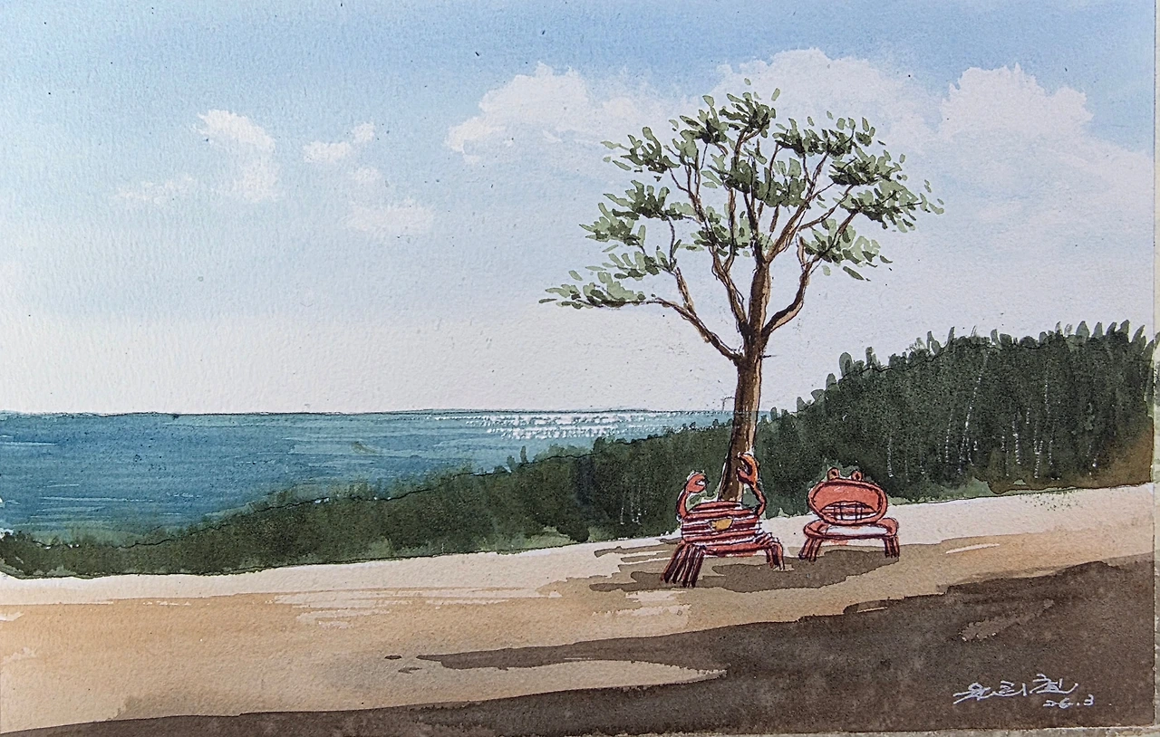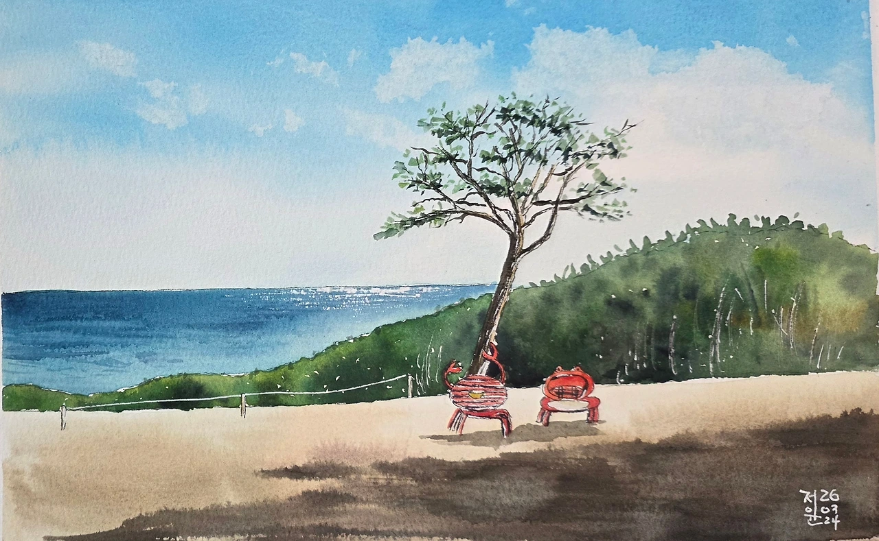 평생교육원 봄과제로 강구에 있는 오션 비치cc의 풍경을 그려봤습니다. 수강생들과 저의 작품을 함께 올려 봅니다.