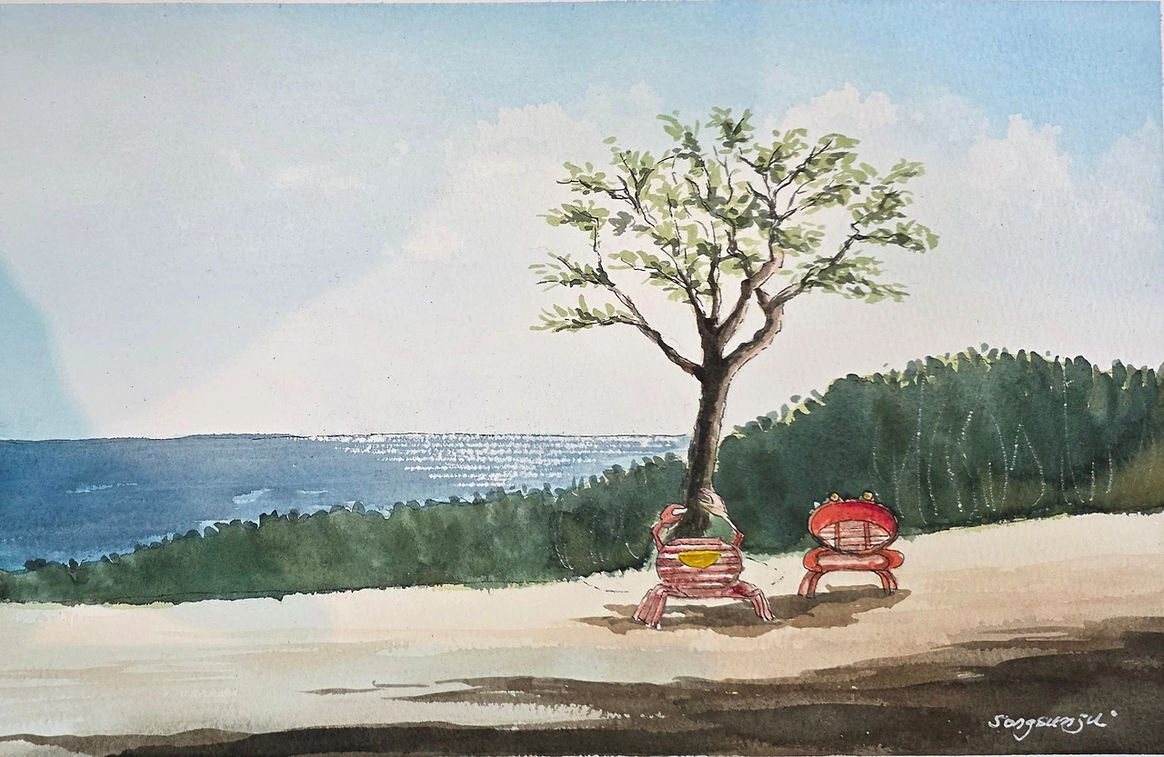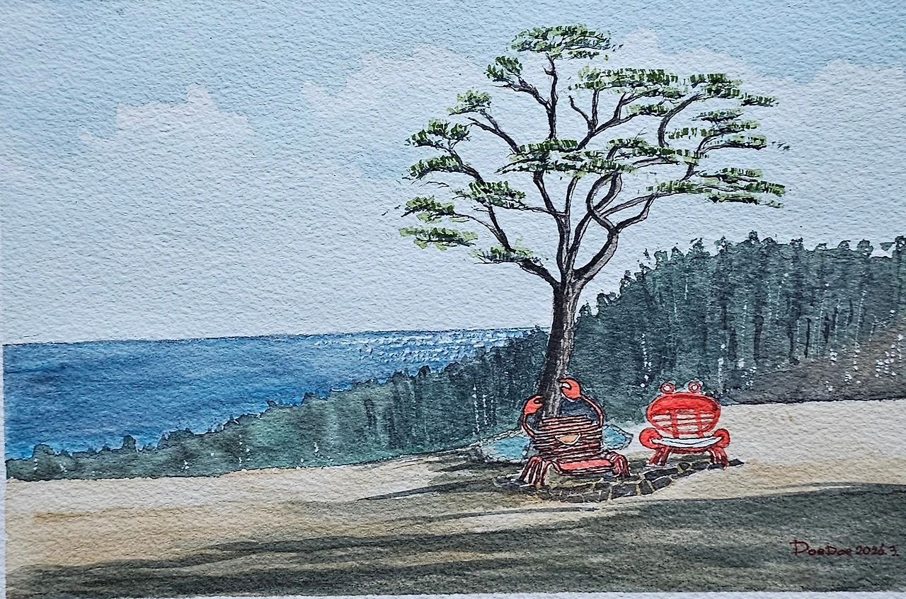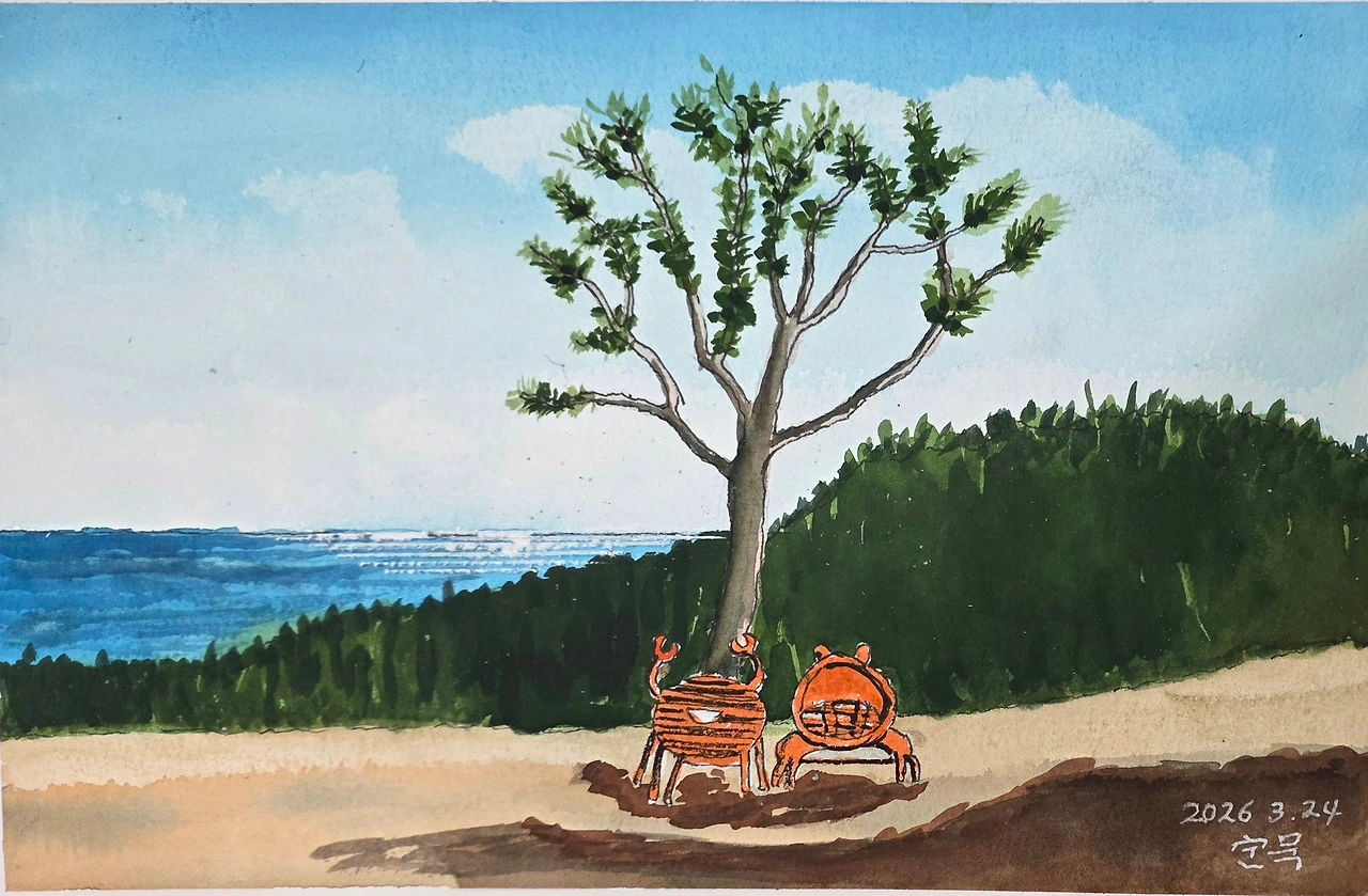 평생교육원 봄과제로 강구에 있는 오션 비치cc의 풍경을 그려봤습니다. 수강생들과 저의 작품을 함께 올려 봅니다.