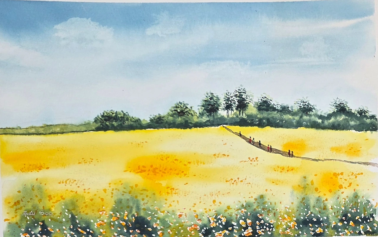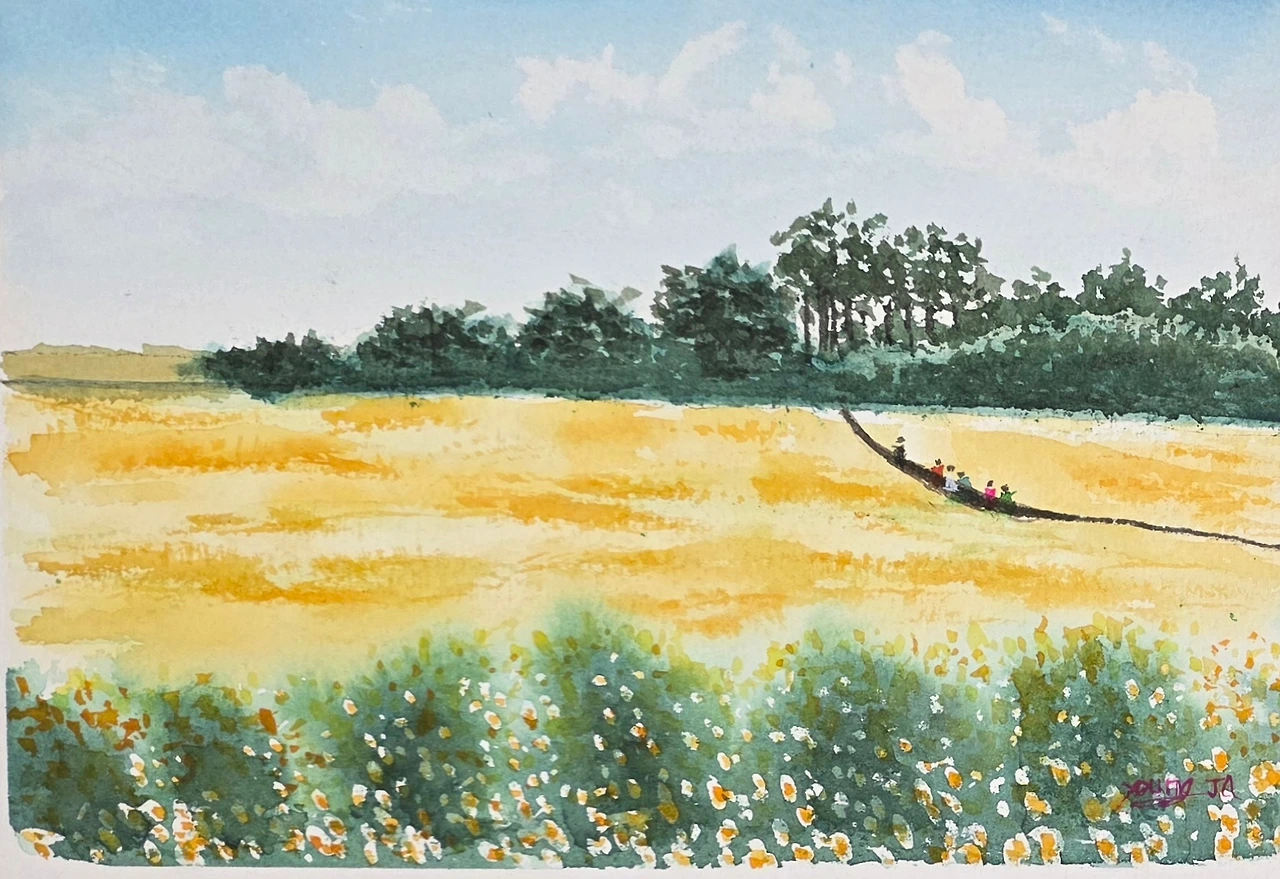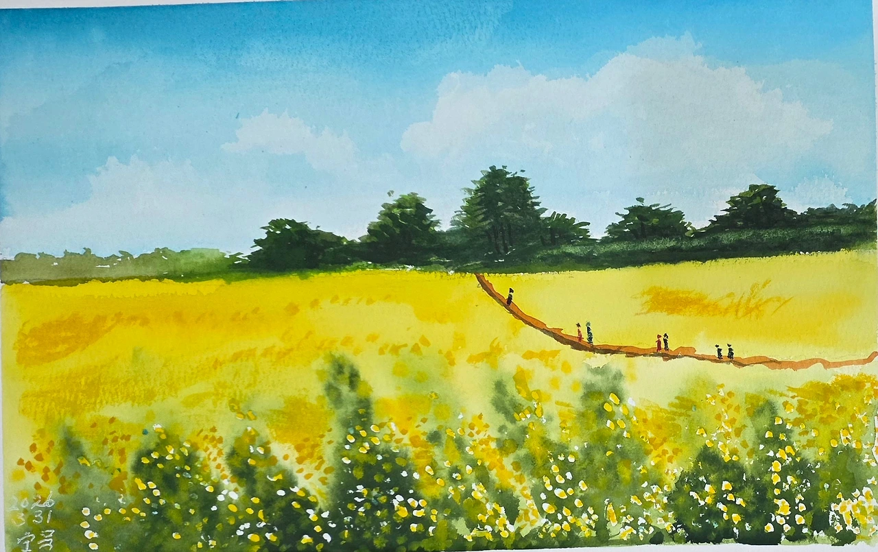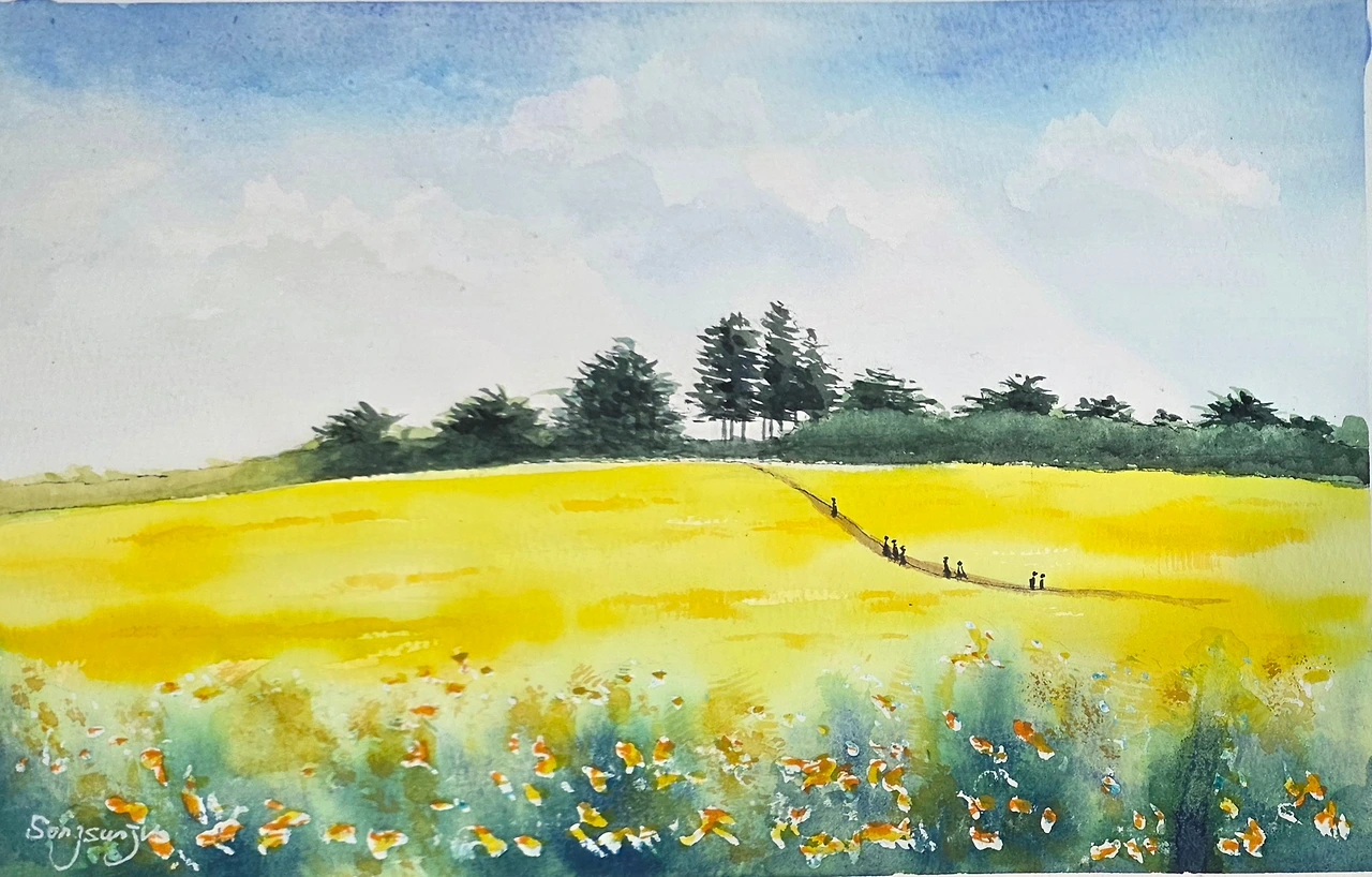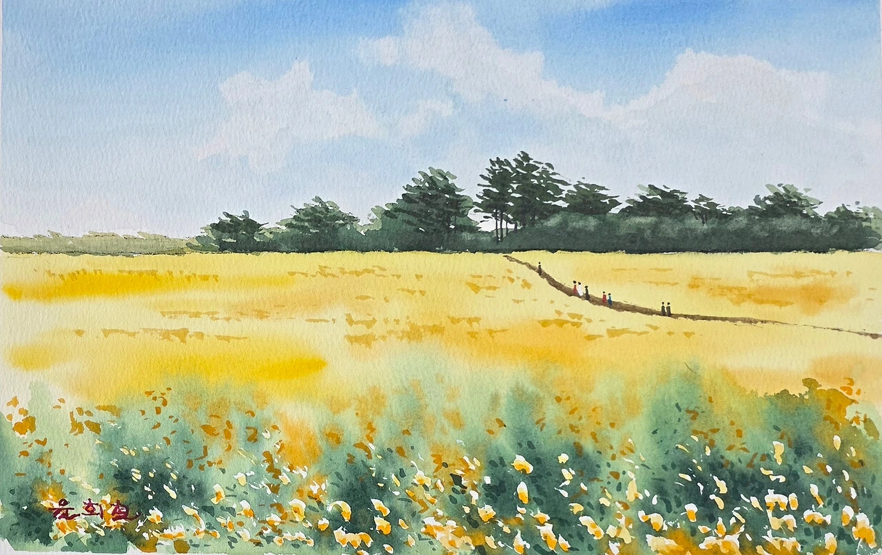 평생교육원 봄학기 봄풍경으로 제주도 함덕 유채밭을 수강생들과 함께 그려봤습니다.
