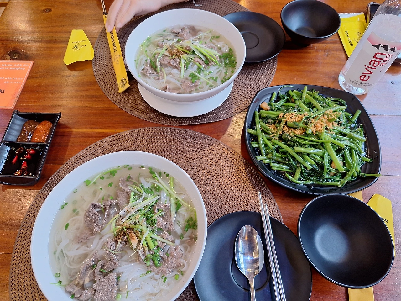 모닝투어 첫 번째 코스는 톰 하우스였다. 쌀국수는 기본 제공이었고 나는 모닝글로리 4달러를 추가했다.