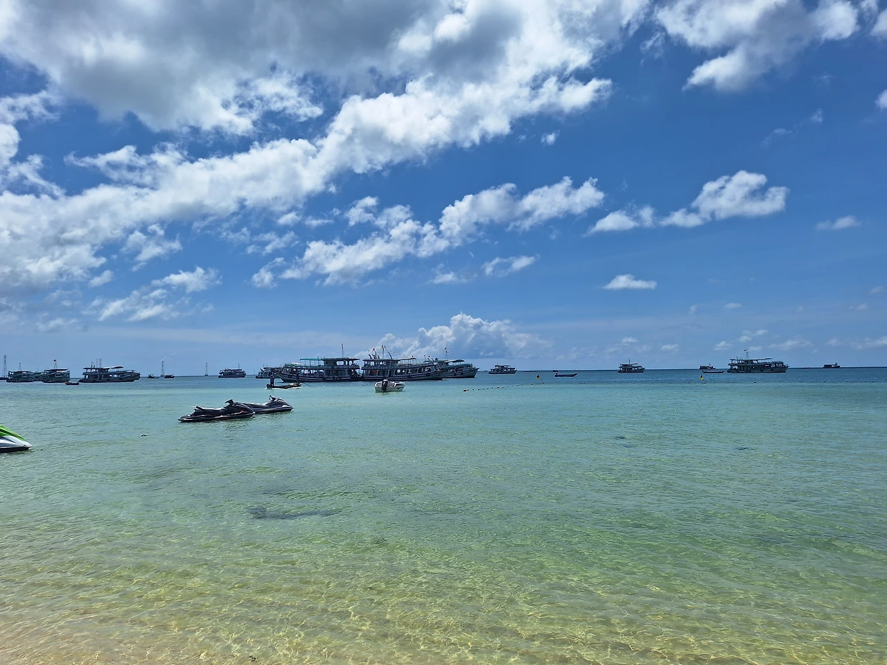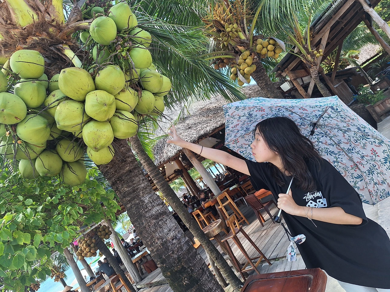 모닝투어 네 번째 코스는 샤오비치였다. 해변에 코코넛이 주렁주렁 열린 야자수가 가득한 가운데 수상레저를 위한 선박들이 즐비하게 정박해 있었다. 담날 스노클링도 이곳에서 배를 타고 출발했다.