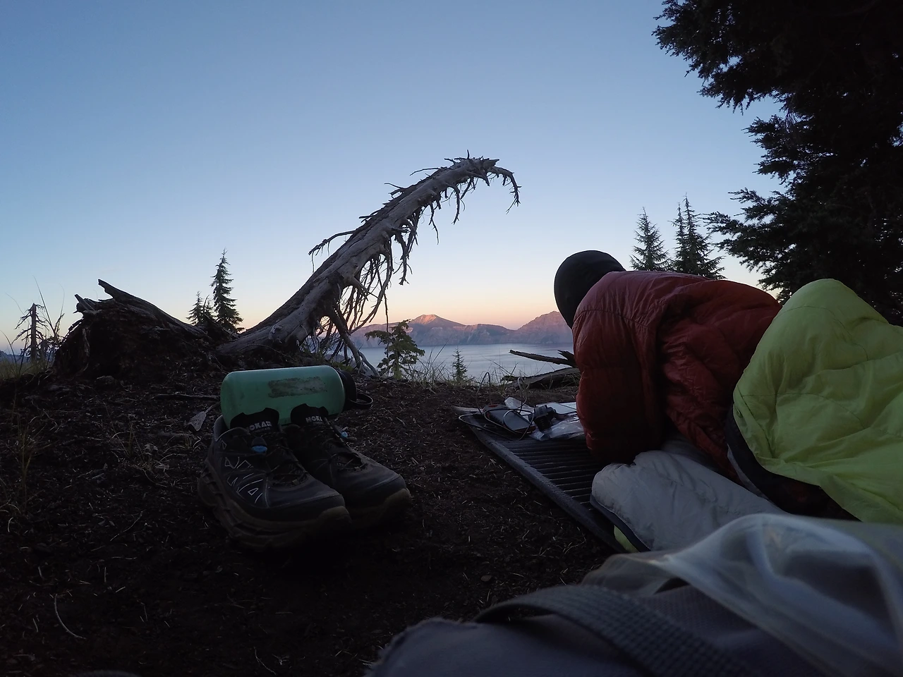3. Crater Lake Rim Trail 길 바로 옆에 자리를 잡고 누웠다. 정말 오랜만의 비박.