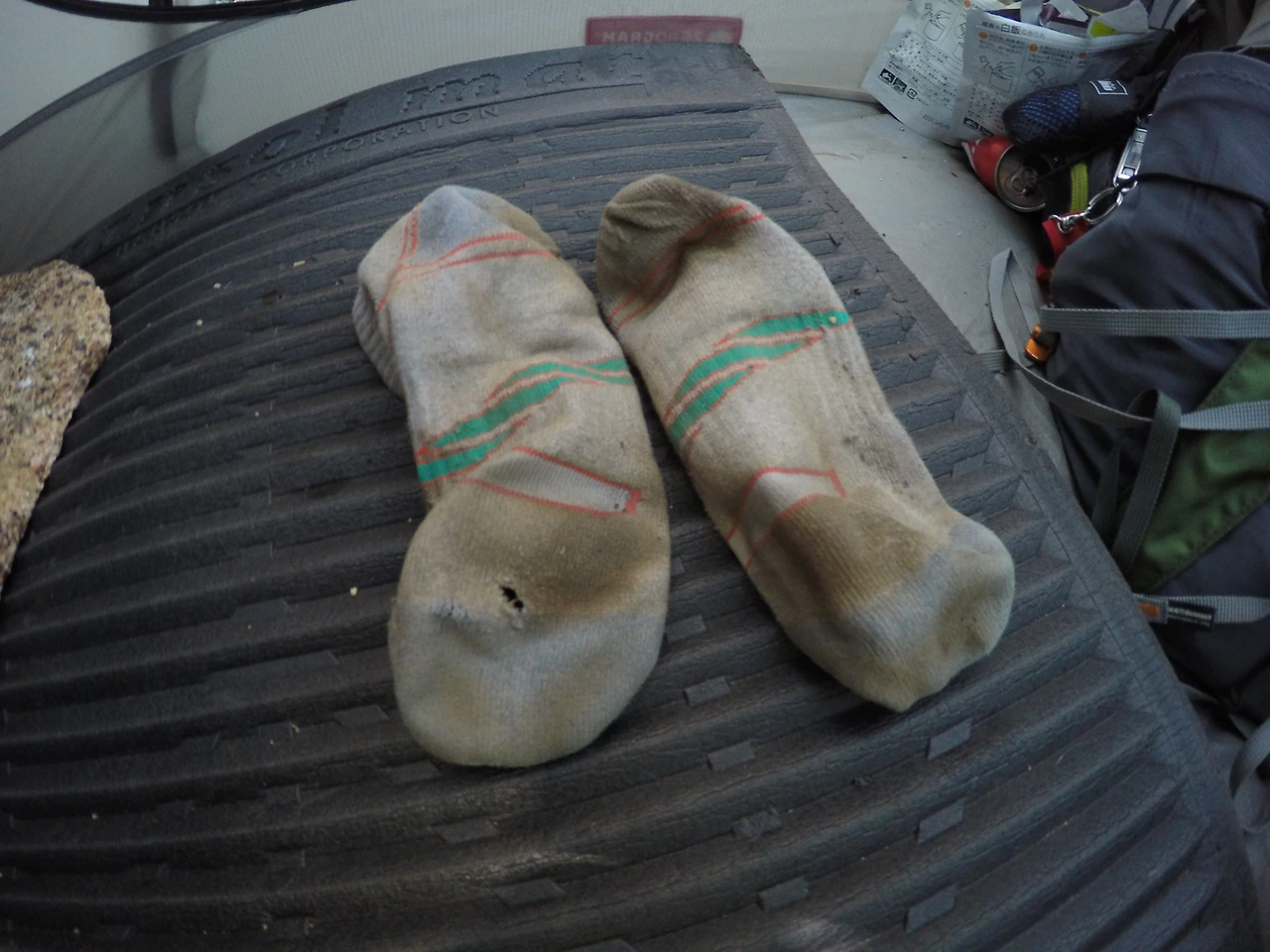 5일 동안 걸은 양말은 구멍이 났다. 여유 있게 챙겨 왔으나, 앞으로 과연 몇 켤레를 신게 될지는 모르는 일이다. 이 정도면 앞으로 수시로 갈아 신어야 할 듯하다.