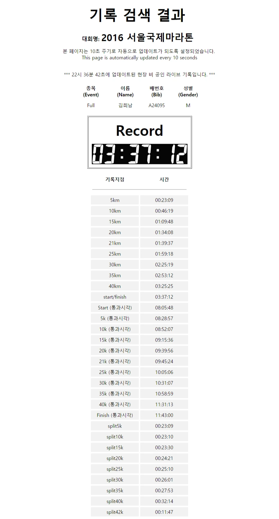 이후 5~6번을 걷다 뛰다를 반복했다. 멈춰서 걸을 때마다 느껴지는 조급함은 정말 오랜만에 느끼는 조급함이었다. 발목부상에서 회복되지 않았고, 짧은 준비기간이기는 했지만 항상 실전에서 강했기에, 걱정을 하면서도 은근히 기대를 했던 것도 사실이다. 하지만 지금 나는 걷고 있고, 조금씩 기록을 타협하며 레이스를 이어나가고 있다.
