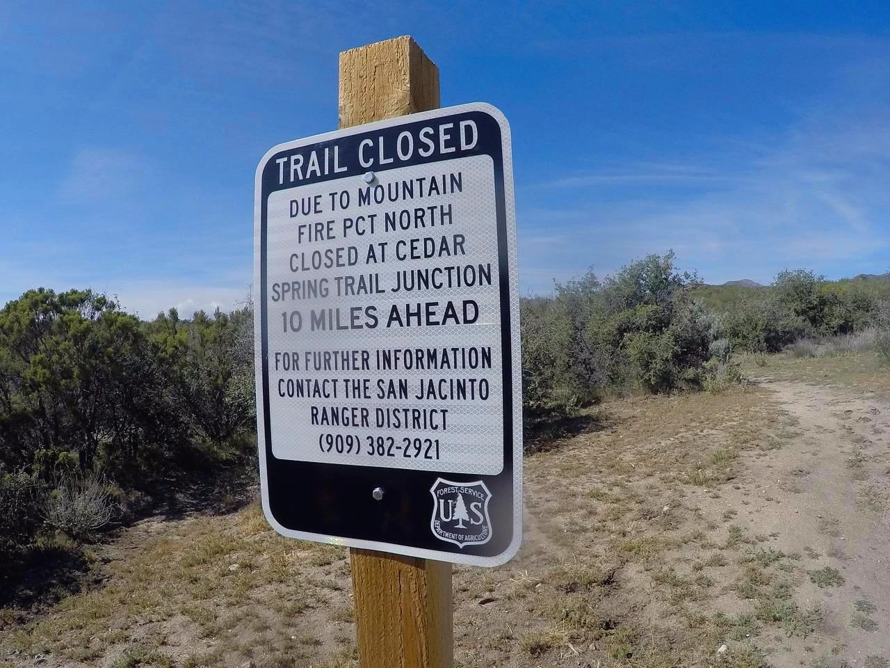 카페에서 잠깐의 휴식 후 카페의 차량을 타고 PCT로 돌아간다. 힘을 내며 길에 들어선 지 얼마 되지 않아 화재로 인해 트레일이 통제되어 있다는 안내판을 마주한다.