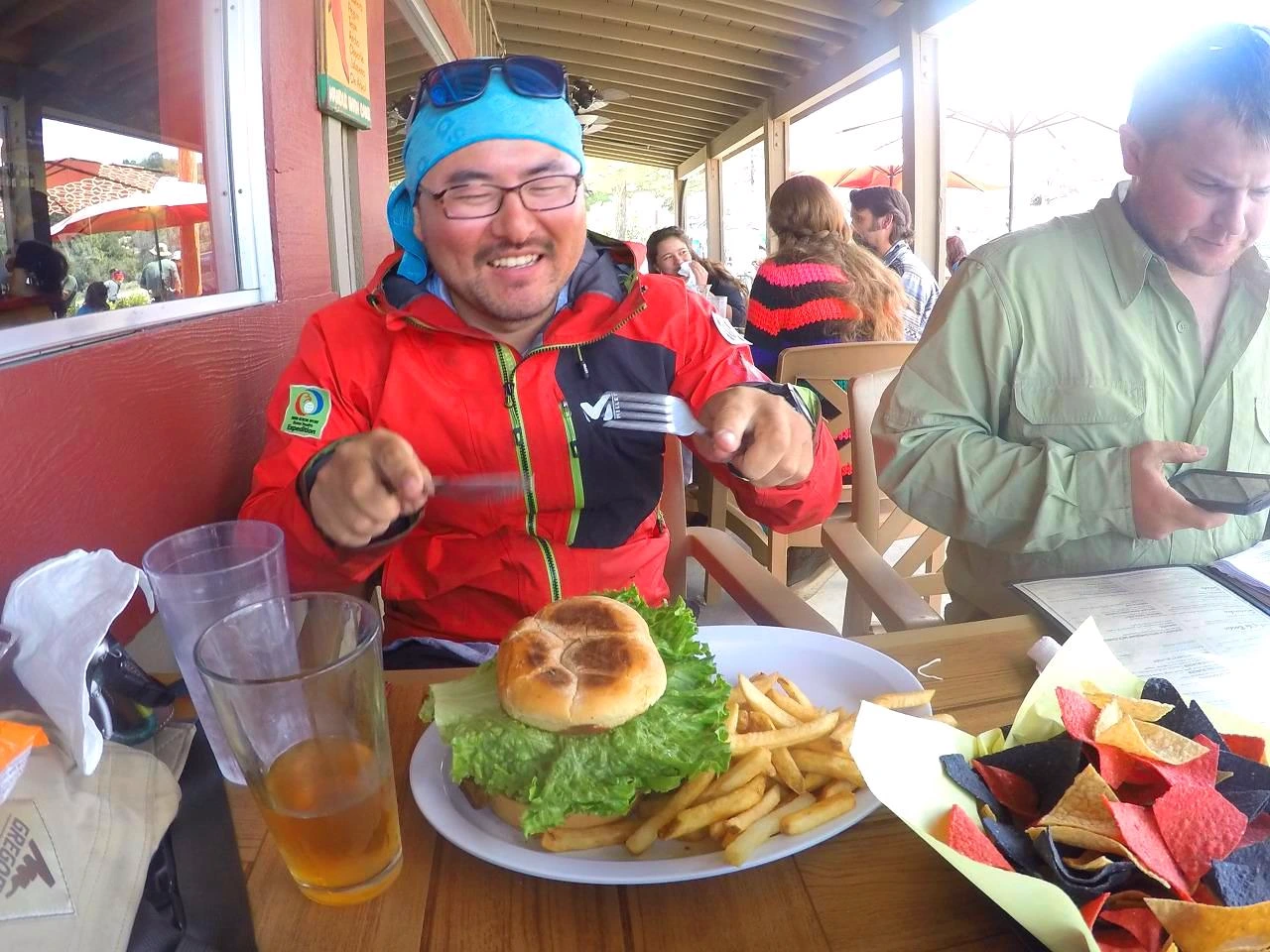 시끌벅적한, 하이커 반 일반인(?) 반인 식당의 분위기는 밝다. 야외 좌석들이 놓인 공간의 난간에 줄지어 기대져 있는 배낭들, 그 끝에 배낭을 내려놓는다. 구석의 빈자리를 찾았고 테이블 사이를 지나며 눈이 마주친 하이커들과 가볍게 인사를 한다. 얼마 전에 만난 이글아이도 함께 자리에 앉아 메뉴판을 살펴본다.