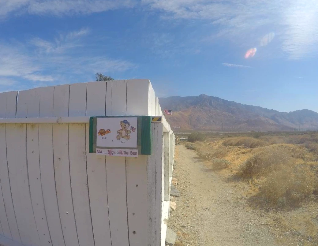 방명록을 나긴 뒤 다시 몇 백 미터 남지 않은 지기 앤 베어로 향한다. 먼저 출발한 형은 보이지 않는다. 덕분에 얼마 가지 않아 길이 좀 헷갈리는지 잠시 멈칫한다. 답답할 노릇이다. 다행히 멀리서 보이는 흰색 울타리가 히맨이 가야 할 곳임을 알려준다. 흰색 울타리 안의 PCT 하이커들의 안식처 지기 앤 베어에 도착한다. 먼저 도착한 형은 벌써 배낭을 내리고 쉬고 있다.