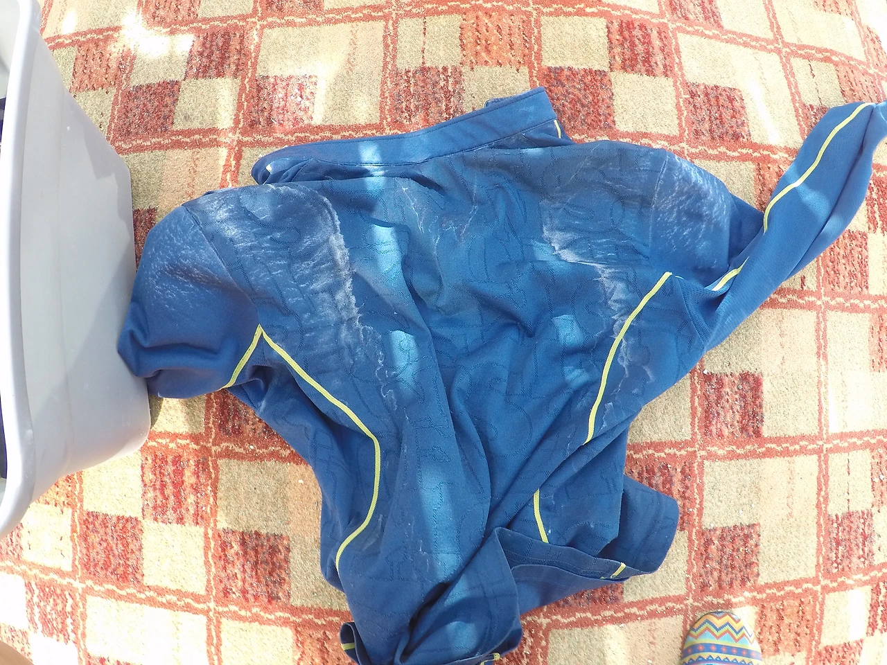 긴 팔 셔츠를 벗는다. 땀에 흠뻑 젖었던 셔츠가 바짝 말라 하얗게 변한 걸 보고는 놀란다.