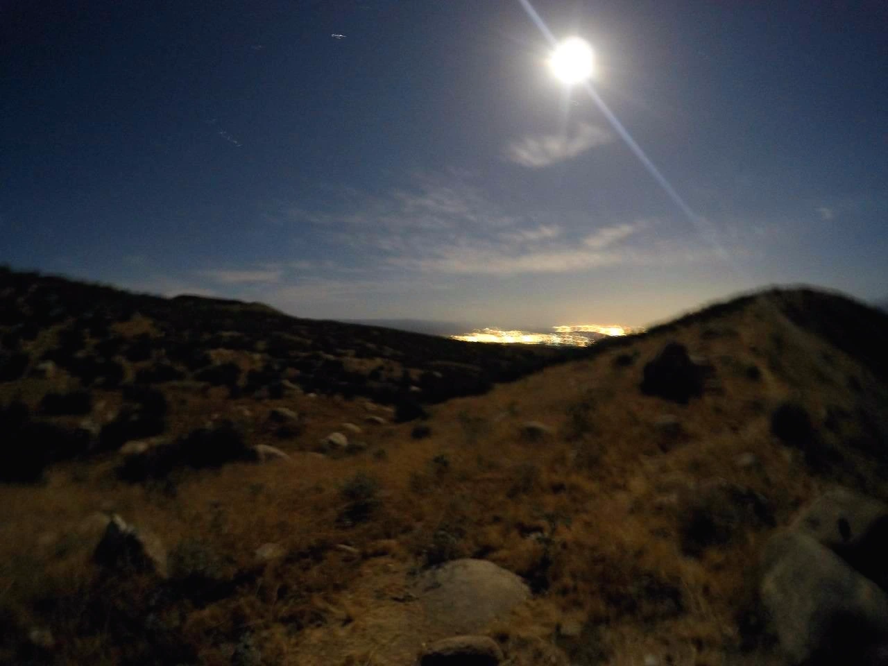 "야간 운행 중이고요 보이실지 모르겠는데 달빛이 엄청나게 밝습니다. 저희 지금 헤드랜턴도 없이 야간 운행하는데 전혀 지장이 없을 정도로 달빛이 밝은 상황입니다. 아이고 화면이 안 보이네. 도시가 보이는데 야경이 엄청나게 멋있습니다. 동영상도 야간모드가 됐으면 좋겠네요. 앞으로 10~15 정도 더 당길 수 있을 것으로 예상됩니다. 예상했던 것보다 최대 추울 것으로 예상했는데 의외로 대체로 선선하고 운행하기 딱 좋은 날씨입니다. 재킷을 따로 입을 필요는 없을 것 같고요, 긴 팔티 하나로 충분히 운행이 가능한 정도의 기온입니다. 그러면 무사히 도착해서 또 연락드리겠습니다."