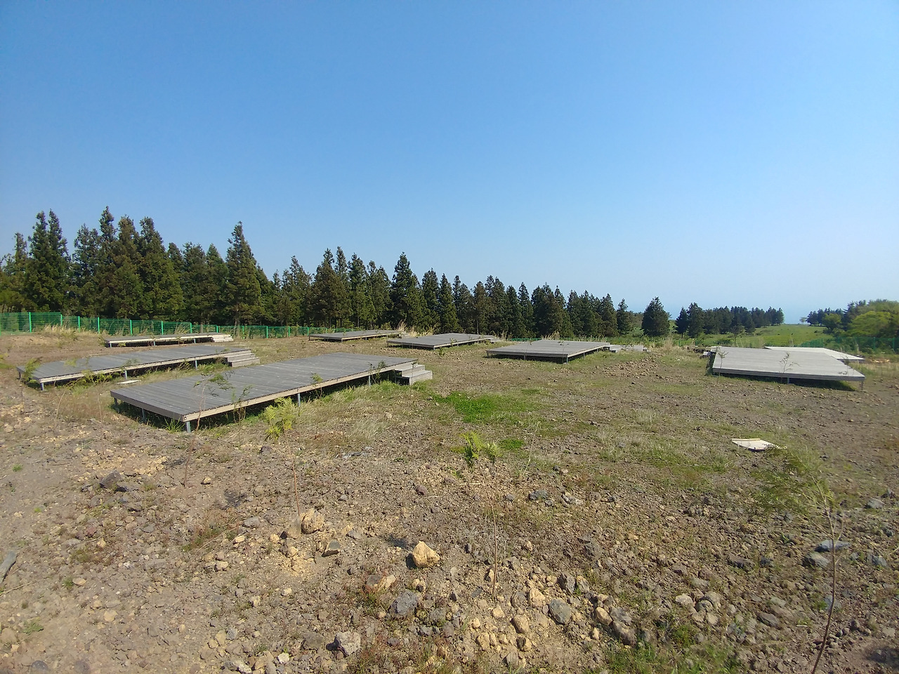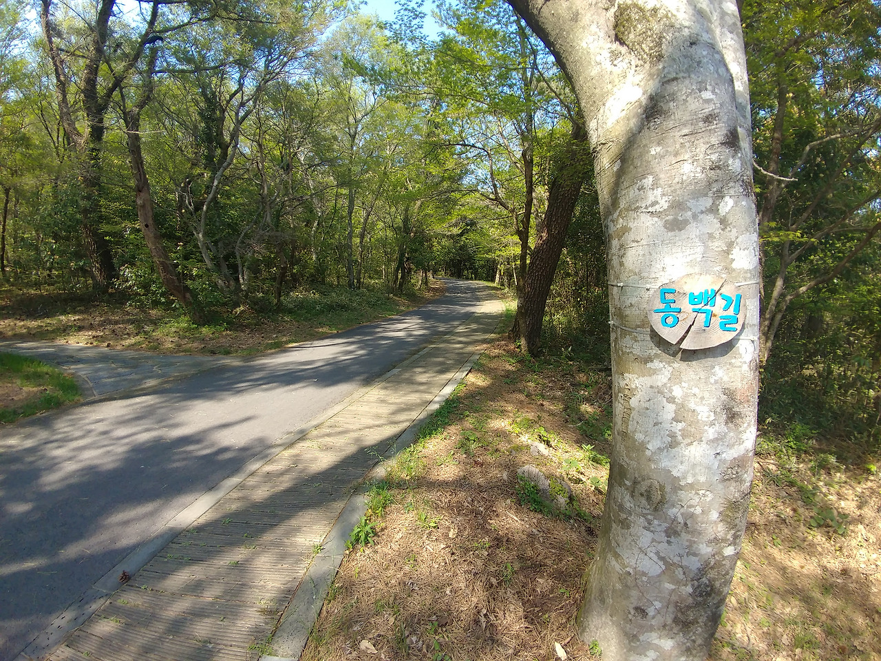 버스 시간이 맞으면 버스를 타고 내려갈까 했으나 배차간격이 긴 버스는 한참 뒤에나 올 것 같아 그냥 도로를 따라 내려가기로 한다. 2.5킬로미터 정도니 내게는 아주 부담이 되는 거리는 아니었다. 무오법정사로 들어서는 도로에 접어들어 얼마나 들어갔을까. 오른쪽의 공터에 커다란 데크 시설들이 눈에 띄었다. 버려진 장소이거나. 새로운 캠핑장을 지으려는 것 같았다. ‘이런 곳이 있는 줄 알았으면 저번에 밤에 고생하며 내려갈 일이 없었을 텐데...’ 다음에 다시 올 것을 기약하며 위치를 기록해둔다. 그리고 드디어 한라산 둘레길 동백길 구간에 접어들었다.