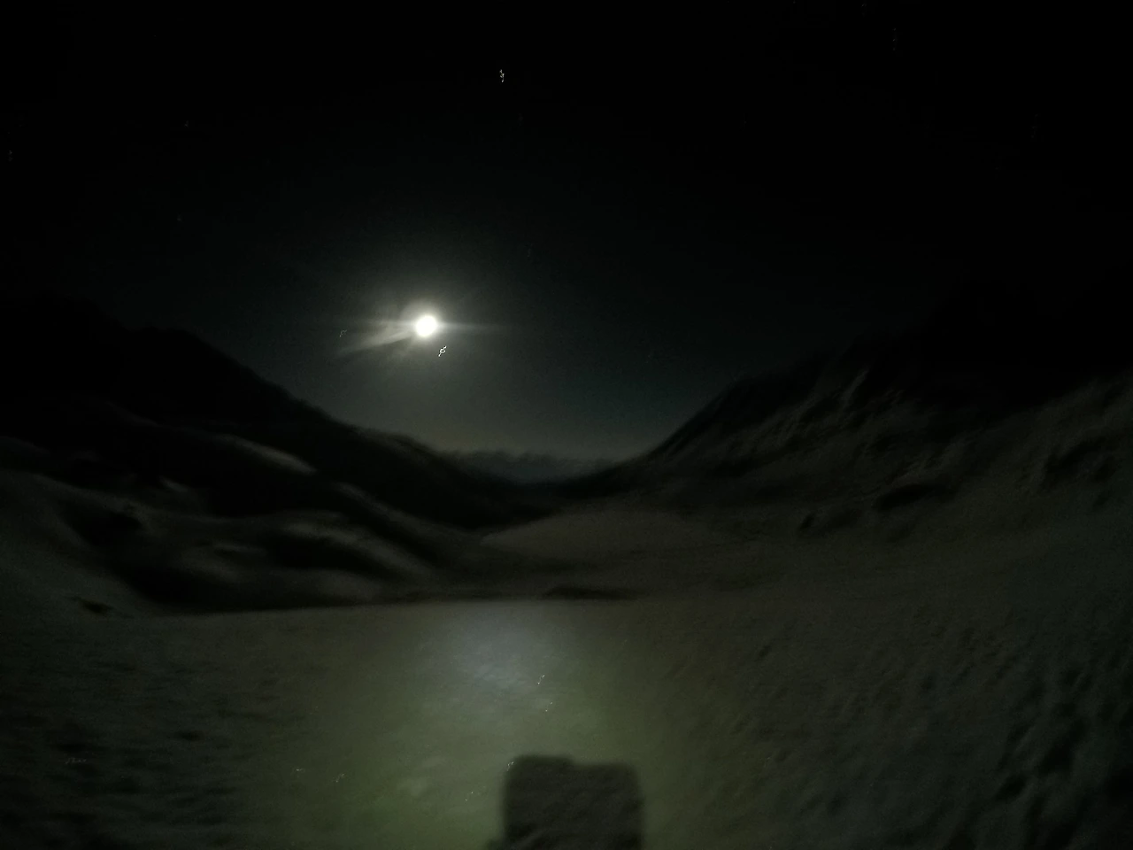 ▲ 달빛을 따라 걷다. 모든 감각이 차단된 설산의 하이킹. 이곳에서 이것저것 재지 않는다. 그저 보이는 것을 믿는다. ⓒ 윤상태