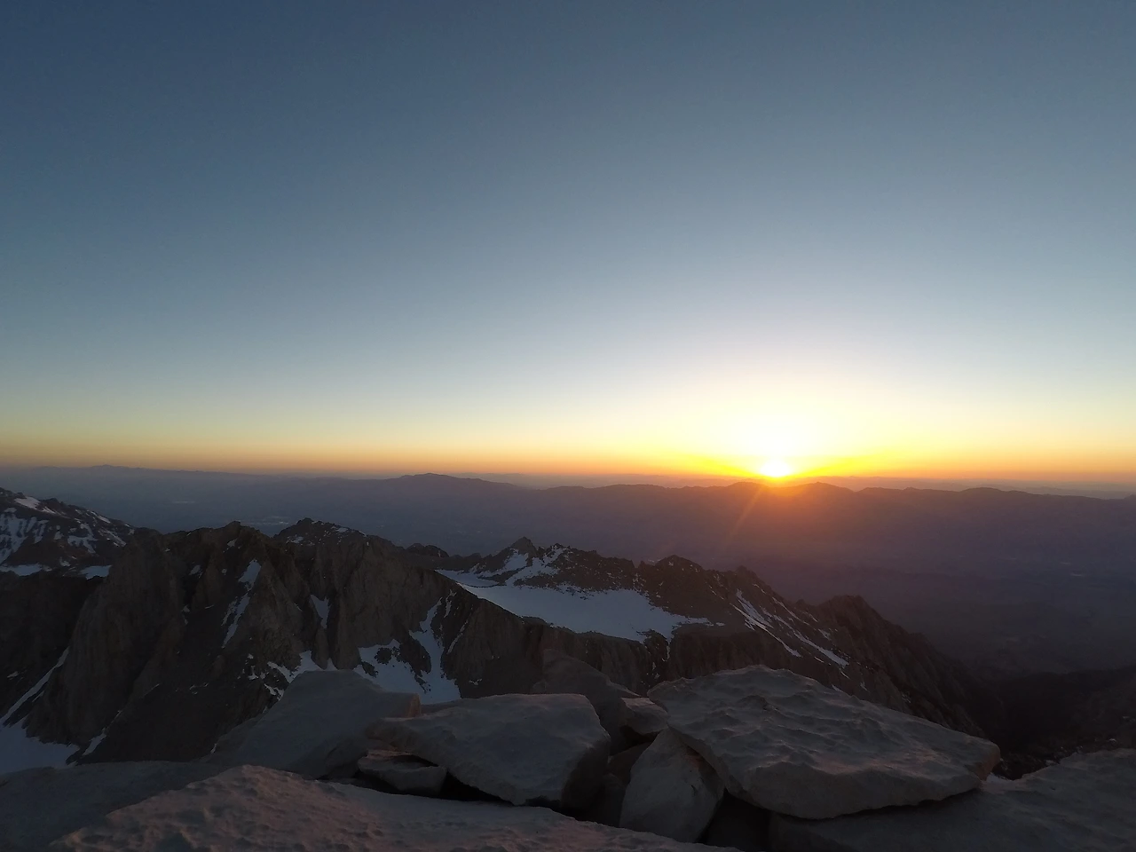 바닥에서 올라오는 냉기를 막기 위해 매트리스를 반으로 두껍게 접어 몸통 부위에 받쳤다. 엉덩이부터 다리에는 빈 배낭을 깔았다. 체온을 보호하기 위해 우비를 포함해 가진 모든 옷을 입었다. 마지막으로는 응급상황용 은박지 담요를 온몸에 칭칭 두르고 침낭에 들어간다. 마치 알루미늄 포일로 포장한 김밥 한 줄 같다고 할까. 휘트니 산 일출을 보기 위해 오후 8시에 잠을 청했다. 하지만 침낭 속은 금세 차가워졌다. 바깥으로 나가지 못한 체온 때문에 은박지 담요 안에는 이슬이 몽글몽글 맺혔다. 침낭은 축축해졌다. 추위에 잠을 자다 깼다를 반복했다. 곧 휴대전화 알람이 울렸다.