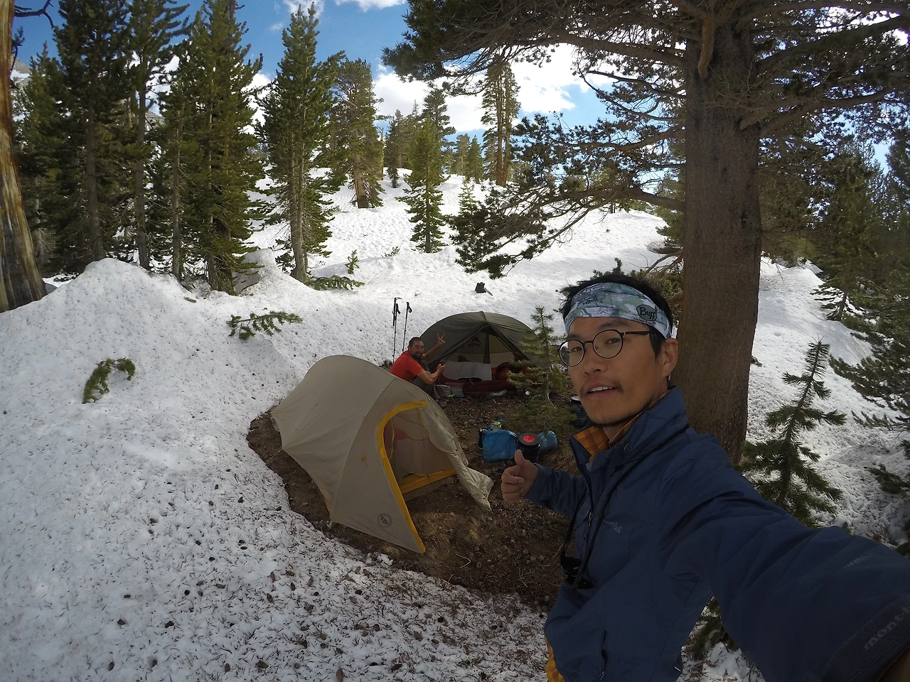 ▲ 휘트니산 등반 전 베이스캠프 휘트니산 등반을 위해 베이스 캠프를 마련했다. 눈이 녹아 있는 공간에 텐트를 칠 수 있어 운수 좋은 날이었다. ⓒ 윤상태