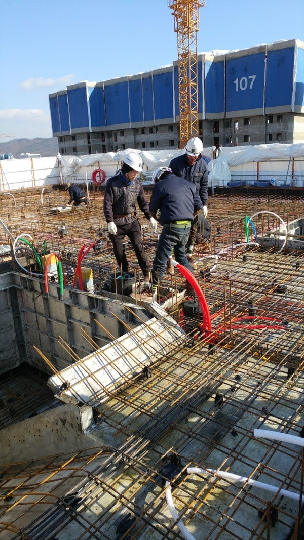 ▲ 진천군 맹동면 현장에서 / 여행 경비를 벌기위해 전기골조 작업을 숙식하면서 일을 하였다. ⓒ 정기건