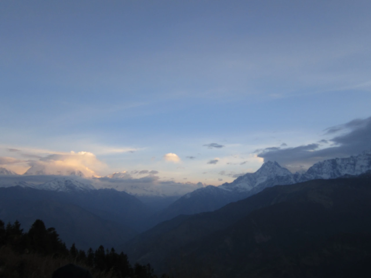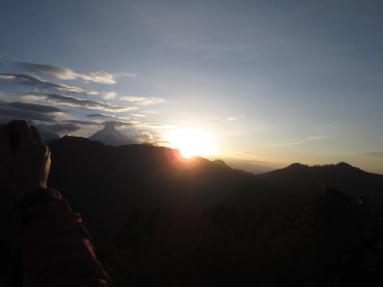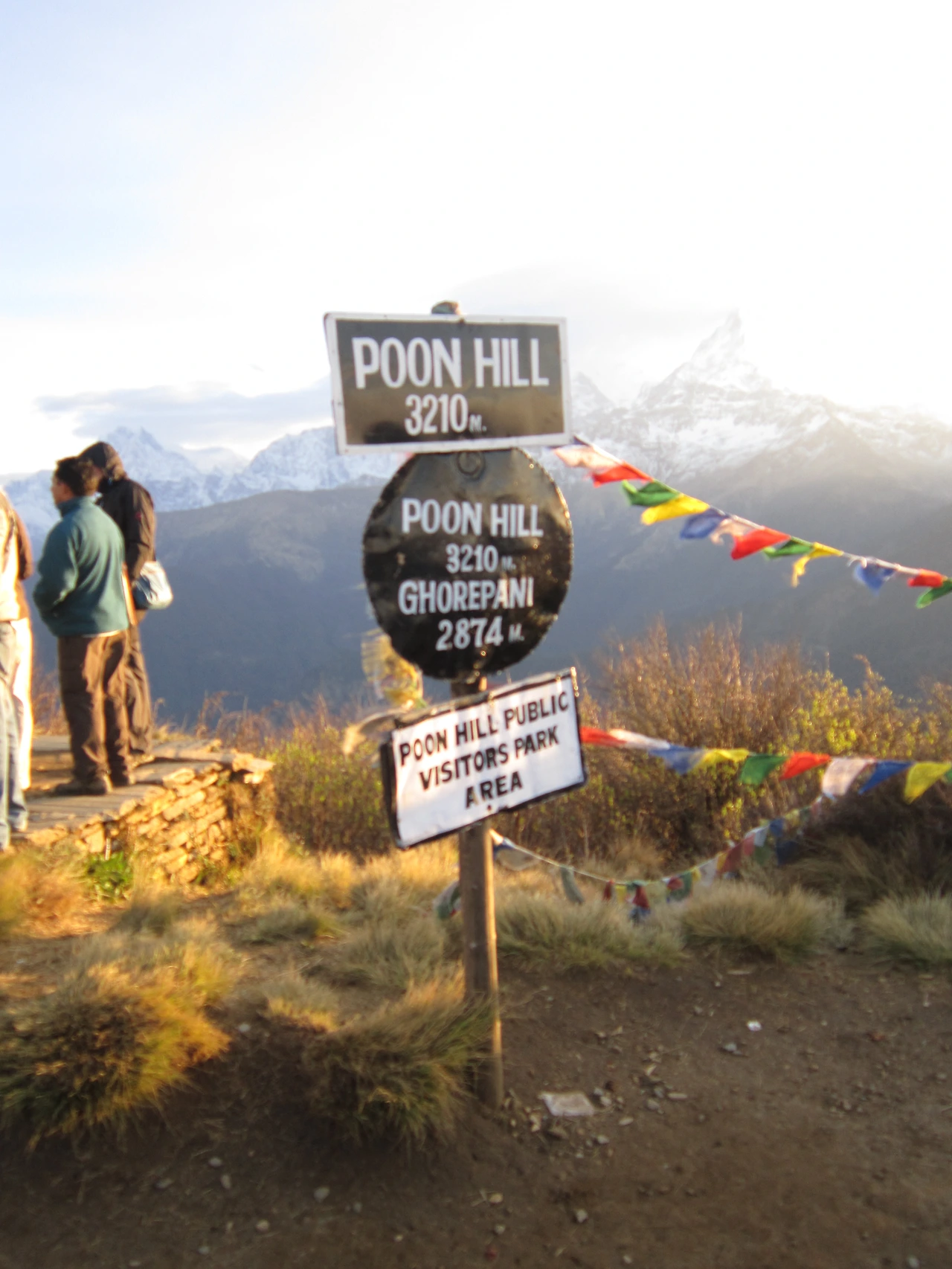조금씩 시간이 지나면서 내 눈에도 안나푸르나와 마차푸차레의 설산이 보이기 시작했다. 거기에 아빠가 정성 들여 타 주신 대한민국의 맥심 모카 믹스가 제 약효를 발휘하면서 드디어 정신이 돌아왔다. 세상에! 그제야 주위를 돌아보니 푸르스름한 새벽빛 사이로 높이 솟아오른 봉우리들과 그들 위를 부드럽게 덮은 하얀 눈, 신비롭게 우리 주위를 맴도는 구름... 그리고 저마다의 방법으로 이 아름다움을 느끼고 있는 사람들까지. 뭐라 말할 수 없는 기분이 뒤늦게 찾아왔다. 맙소사, 내가 온 것이다. 푼힐 전망대 3,210m 라 쓰여 있는 표시판이 우뚝 서 있었다. 키도 작고 마음도 작은 내가 진짜 이 높은 곳까지 오고야 말았구나.