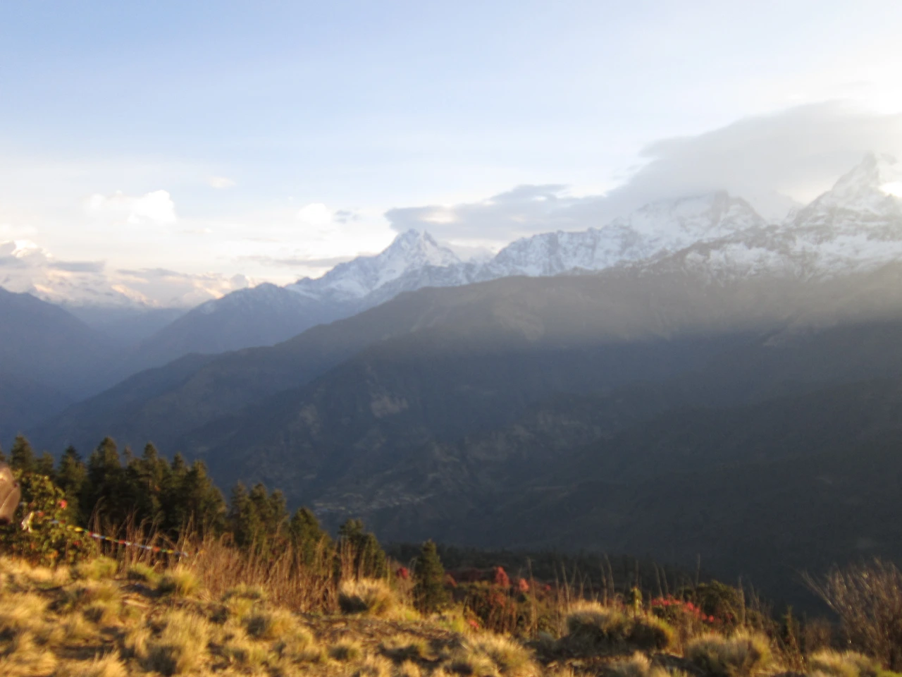 이젠 내리막밖에 없을 거라 생각했는데 웬걸, 또 오르막이다. 그래도 오늘은 이 오르막을 대하는 마음이 한결 가볍다. 올라봤자 또 얼마나 오르겠나 싶은 거지. 하하. 나무 한 점 없는 널찍한 능선을 오르는데 마치 수행하러는 가는 길 같다. 멀리 안나푸르나 south랑 마차푸차레가 보인다. 아침에 마주한 절경이 떠올라 다시 마음이 몽글몽글 뭉클해진다.
