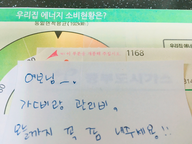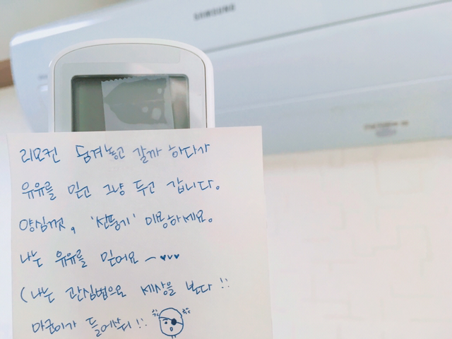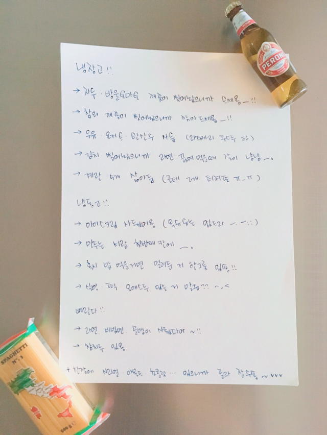 저희 엄마가 결혼 후에 저를 보시고는 몇 번이나 이런 말씀을 하셨거든요. 백 번 생각해도 그 말이 맞는 것 같아요. 효녀는 못 되고 열녀로만 사는 못난 딸내미. 엄마, 미안!!! ㅠㅠ 어휴, 열녀 헤아는 이러고도 마음을 못 놓고 결국 곳곳에 애정(및 당부)이 담긴 쪽지를 남기고 마는데요. 참, 제가 봐도 정성이 갸륵하군요. 유유가 이런 제 사랑을 알까요? ㅎㅎ