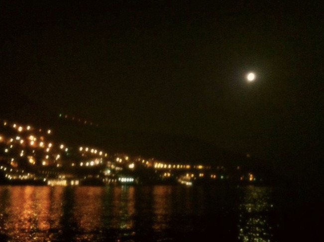 부둣가에 가만히 앉아 어두운 바다 위에 내려앉은 불빛들을 내려다본다.