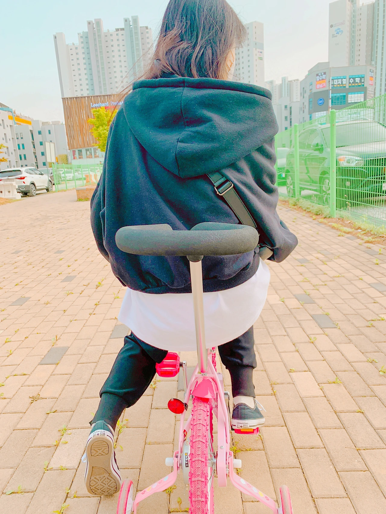 최근 건강검진에서 157cm라고 했다유유는 비웃었다. 비록 수뽕의 자전거가 성인용은 아니지만 나 정도의 사이즈면 어떻게 구겨서 탈 수 있지 않을까? 옆에 보조바퀴가 있으니 균형 잡는 건 걱정 안 해도 되고.