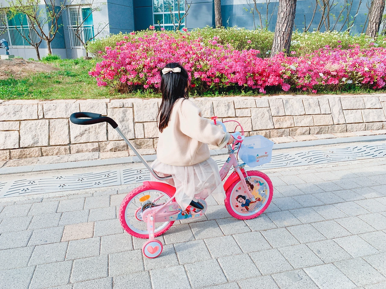 어느 날 유유랑 둘이 산책 나간 길에 동네 삼천리 자전거에서 발견하고 바로 구입해서는, 영화 『관상』의 수양대군 이정재의 등장신처럼 당당하게 타고 들어오길래 경악하고 말았다. 솔직히 내가 보고 있던 자전거는 따로 있었지만, 뭐 어쩌겠는가. 따님의 취향은 늘 존중하는 바이다. 핑크, 반짝이, 공주, 캐릭터, 뭐, 이런 것들.