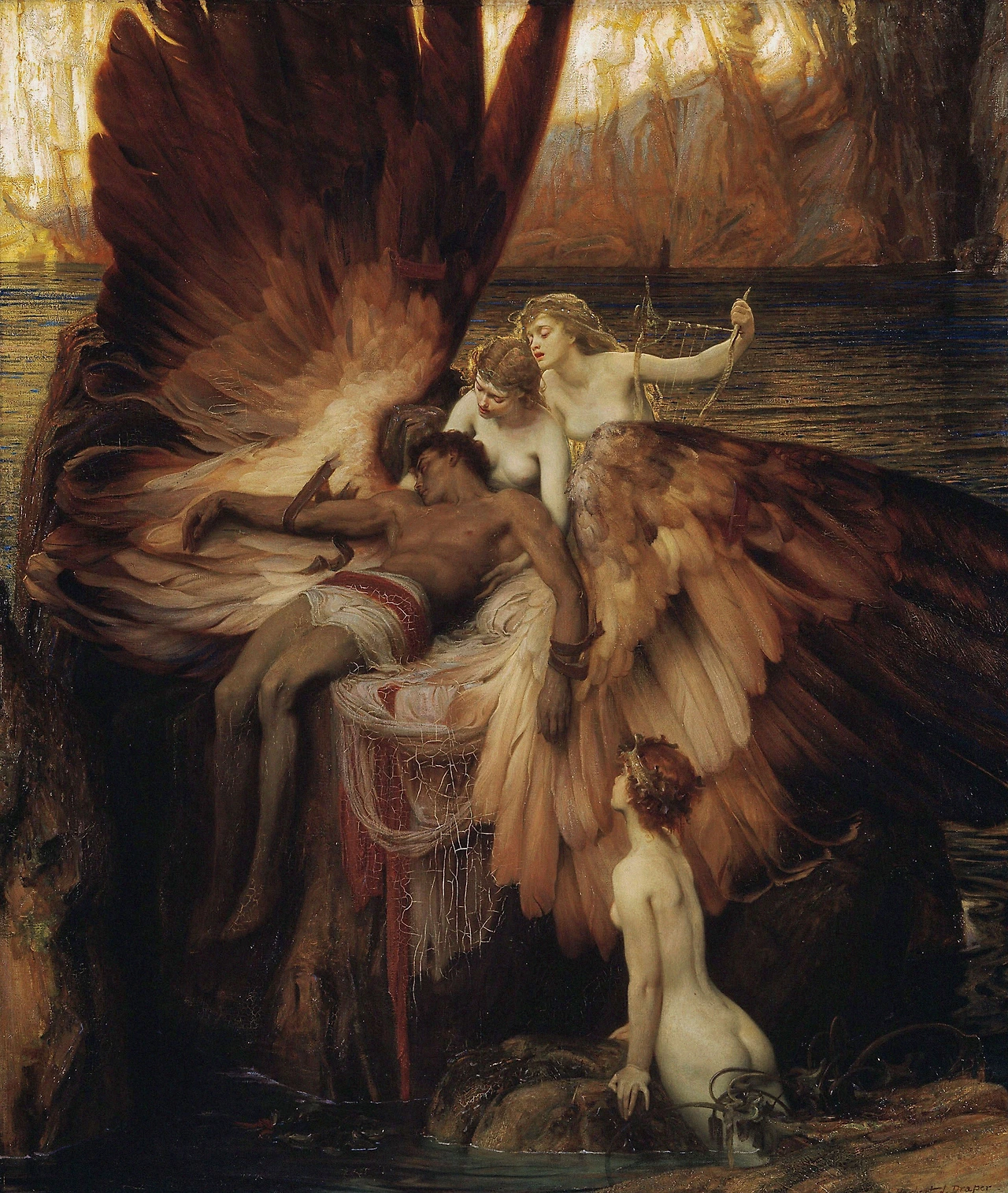 뜨거운 태양은 날개를 녹였고, 그는 이카리아 해로 추락한다.
