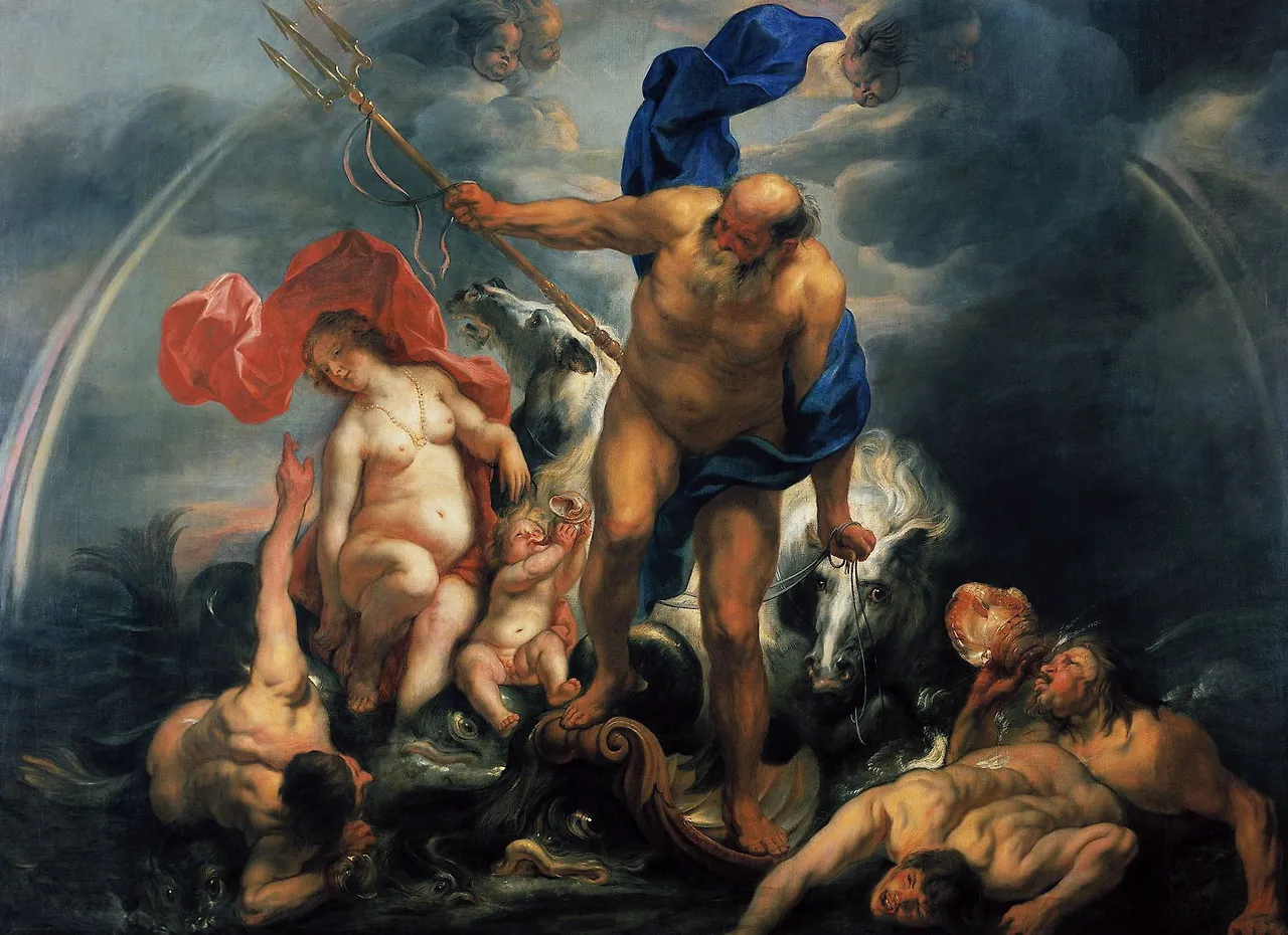그는 바다의 신으로서 물리적인 힘을 통해 두려움과 복종을 이끌어내는 위압적 권위의 전형을 보여준다.