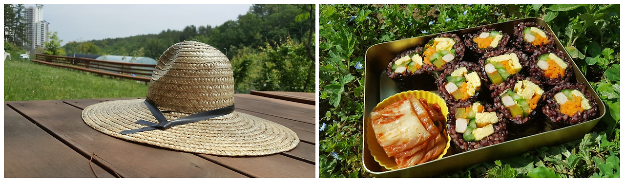 지난해 둘째의 봄소풍. 마침 직장이 쉬는 날이라, 둘째 도시락을 예쁘고 싸주고 남은 재료로 나를 위한 김밥도 쌌다. 아이들을 모두 학교로 보내고 나도 양은 도시락에 김밥을 담아 시원한 맥주 두 캔과 물을 챙겨 텃밭에 걸어갔다. 오월의 햇살을 등으로 받으며 풀을 매고, 벌레를 잡고, 천연 농약을 뿌리고, 물을 주었다. 한 낮이 되어 산그늘이 드리운 평상에 앉아 도시락을 먹고, 맥주까지 마시고 저녁이 다 되어서야 집으로 돌아왔다. 에너지가 충전되고 힘이 나는 하루였다.