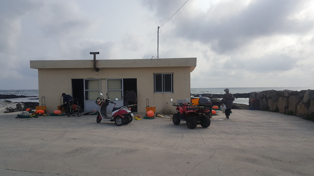 아침부터 장비를 챙겨 들고 와 작업복을 갈아입고 씩씩하게 그 예쁜 하도의 바다로 나가는 해녀들. 이 씩씩한 전문가 집단을 기다리는 것은 고무 슬리퍼뿐만이 아니었다. 작업이 끝날 때쯤 트럭을 몰고 또는 오토바이를 타고 와 바다를 바라보며 이들이 나오기를 걱정스럽게 기다리는 남편들이 있었다.