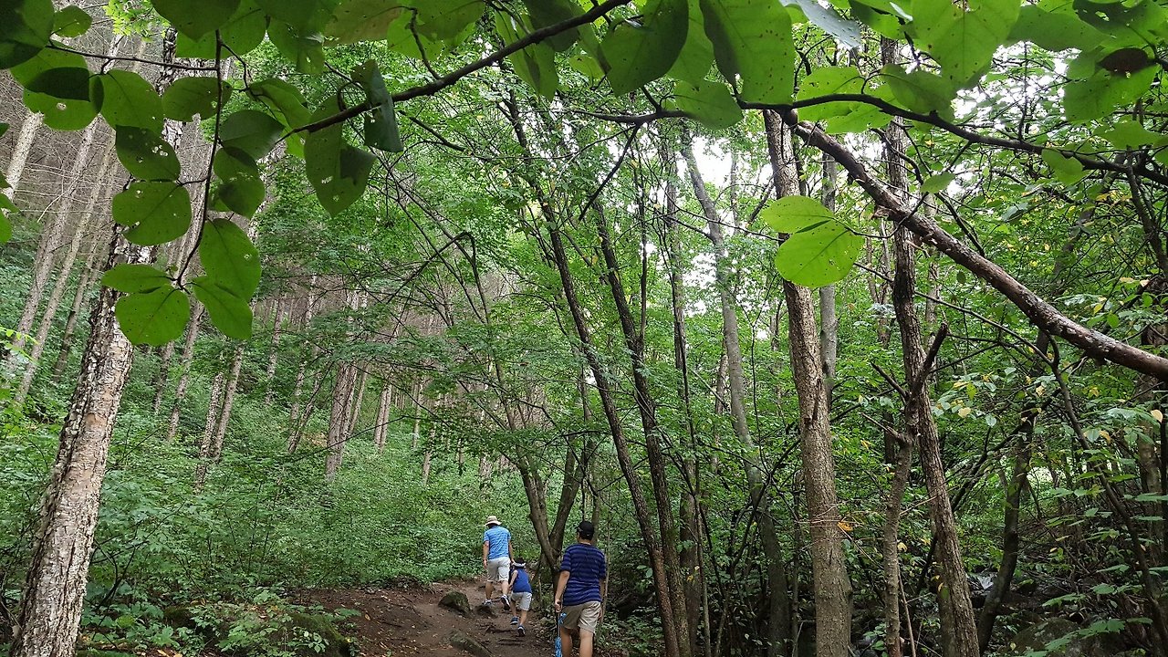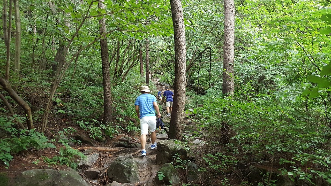 비를 머금어 미끄럽지만 숲이 품은 날것의 숨을 들이 마시는 듯 기분 좋게 트레킹 코스를 걷는다.