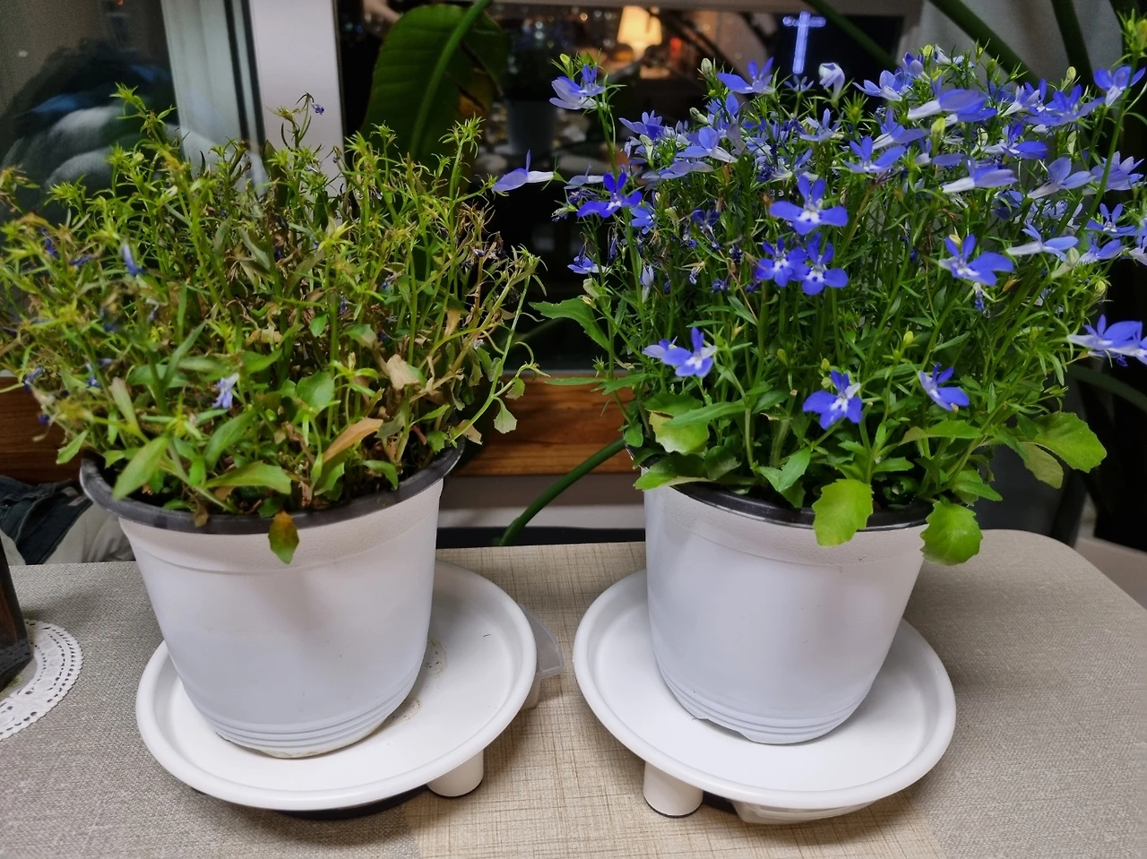 우리 집 환경이나 기운이 좋아서 잘 자라나 보다 생각한 그녀는 며칠이 지나서 자신의 화분을 가지고 왔다. 같은 날 들여온 화분의 극명한 자태란 실로 놀라우리 만치 극명 했다.