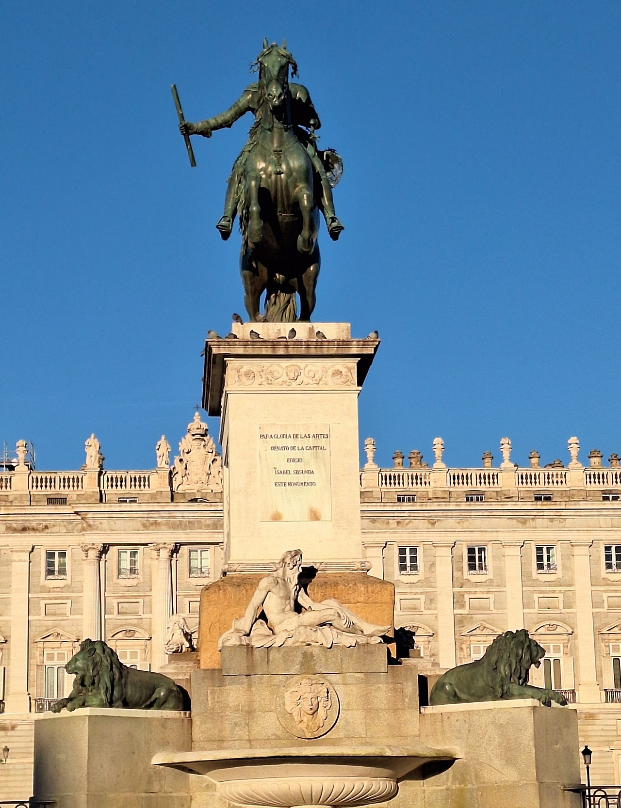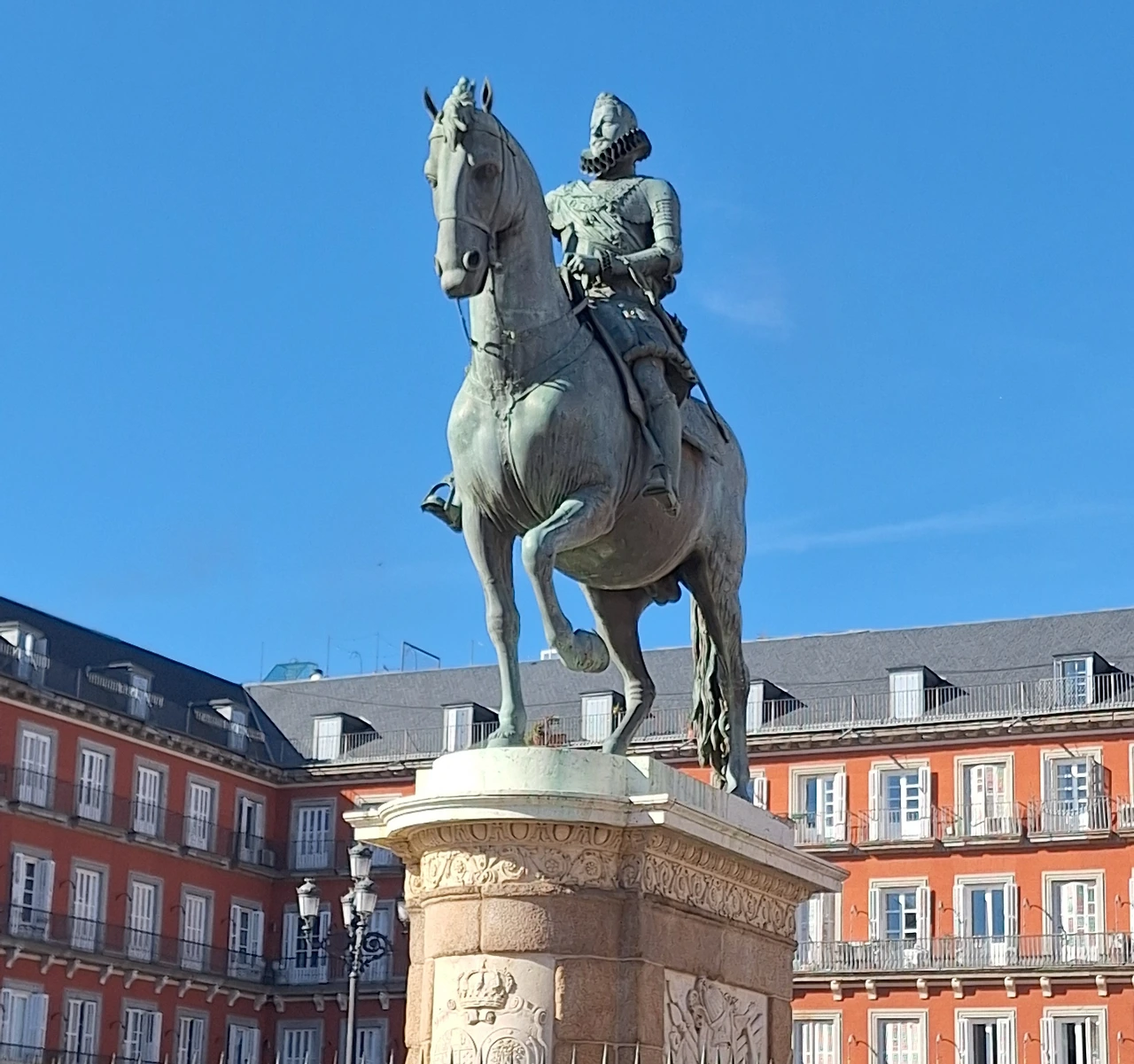 세 번째, 광장 중앙에 위엄 있게 서 있는 동상이 카를로스 3세 기마상, '마드리드 최고의 시장'이라 불리는 국왕의 동상이다.