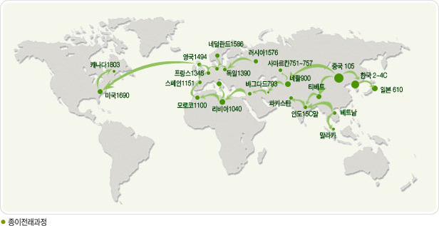 중국에서 105년에 발명된 제지술을 전세계에서 가장 먼저 받아들인 나라는 한국이라고 한다. 제지술은 2-4세기 경에 한국에 도입된 것으로 추정되는데 이는 프랑스, 독일, 영국, 네덜란드 등에 비해 천년 이상 빠른 것이다. 기록 문화가 발달할 수밖에 없었던 것이다.
