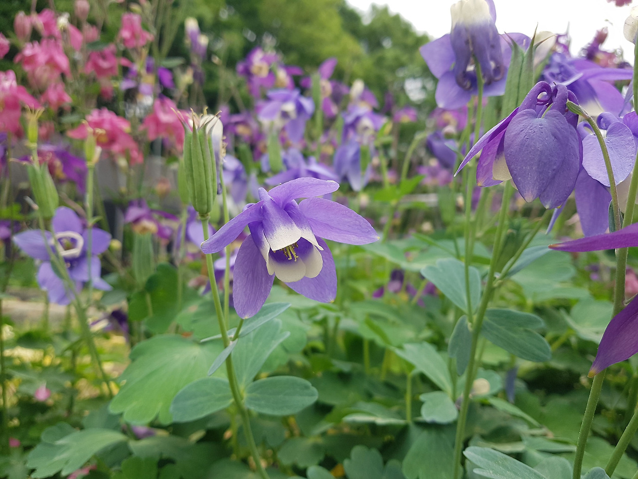 먼저 심었던 보라색 매발톱 뒤로 나중에 사다 심은 분홍색의 매발톱도 꽃을 피웠다.