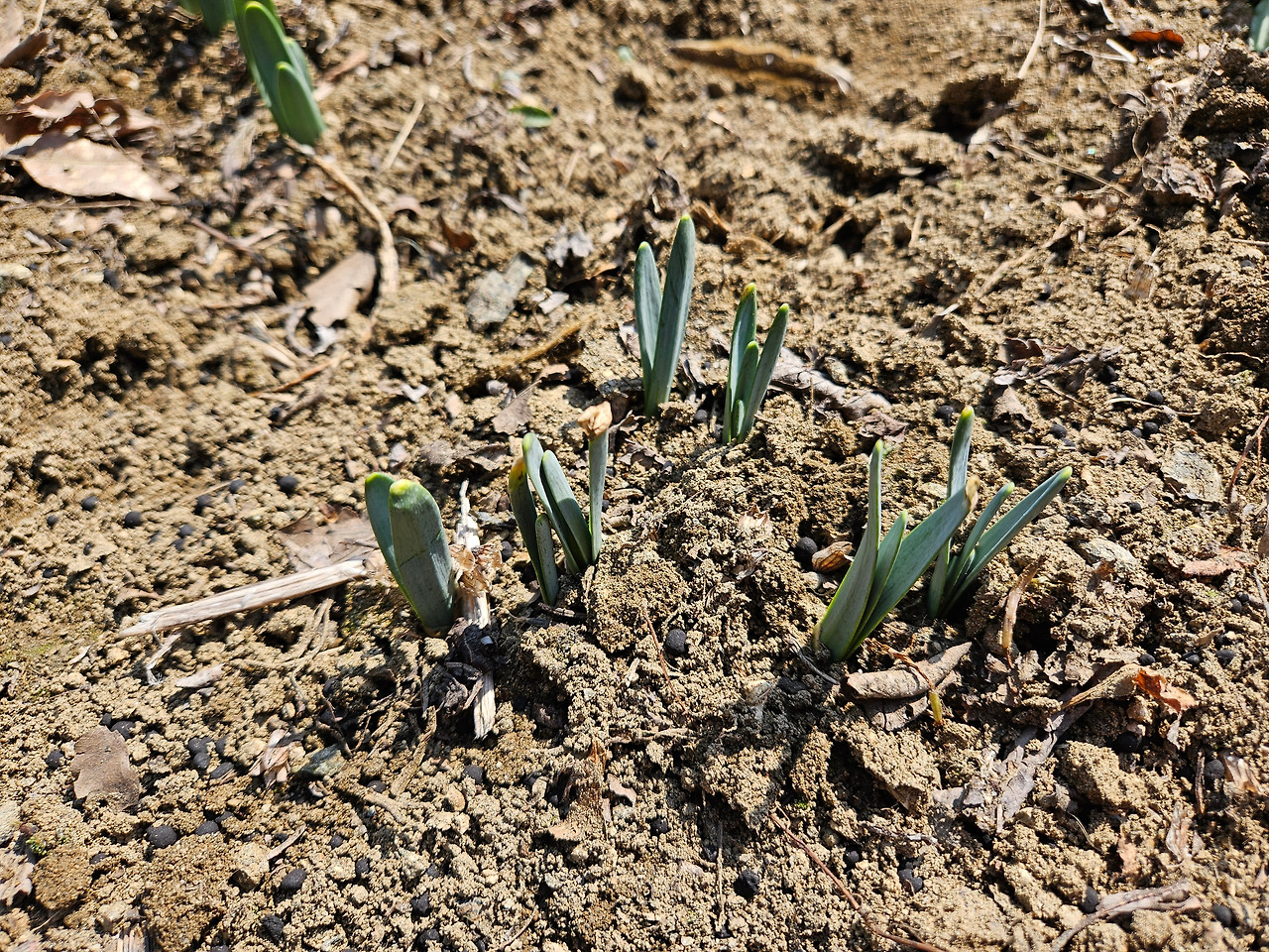 가을에 심어서 추위를 겪어야 꽃을 피우는 추식구근 식물들은 이제 막 싹을 내밀었다. 튤립, 수선화, 히아신스 같은 꽃들이 바로 그들이다. 밖에서 크는 우리 밭의 꽃들에게는 이게 맞는 속도라는 걸 알지만 같은 시기에 심어서 실내에서 키운 집은 벌써 꽃이 하나둘씩 폈다. 다른 사람들이 자랑하듯 올리는 예쁜 꽃 사진들을 보면 괜히 마음이 조급해진다. 몇 년간 식물을 키워오면서 다 때가 있다는 걸 배웠으면서도 예쁜 꽃을 얼른 보고 싶은 마음은 언제나 숨길수가 없다.