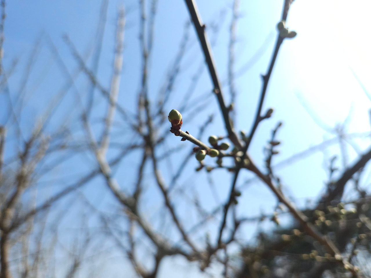 꽃봉오리를 부풀리고 있는 매화