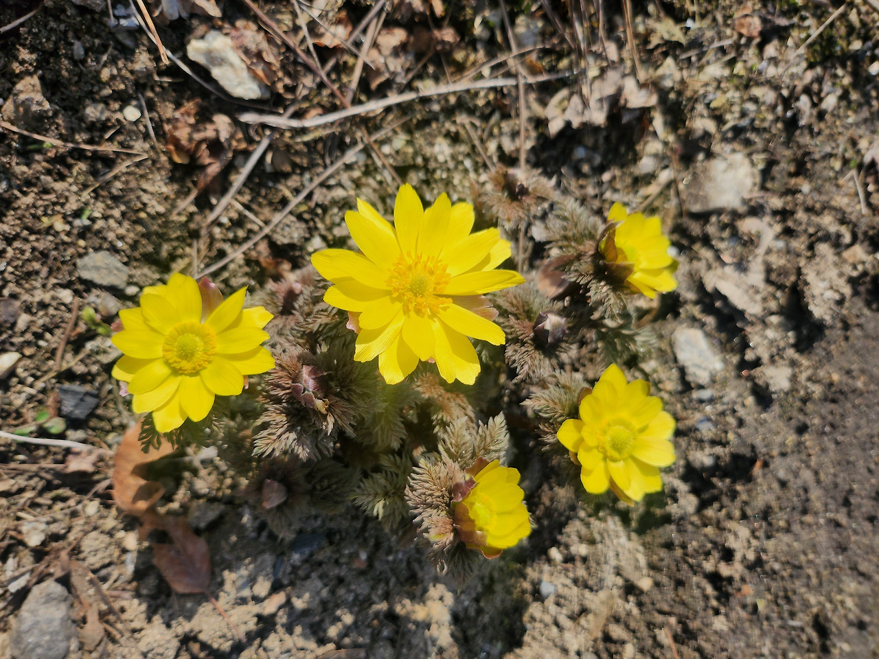 가장 먼저 봄을 알리는 복수초. 지금 밭에 유일하게 꽃을 피웠다.
