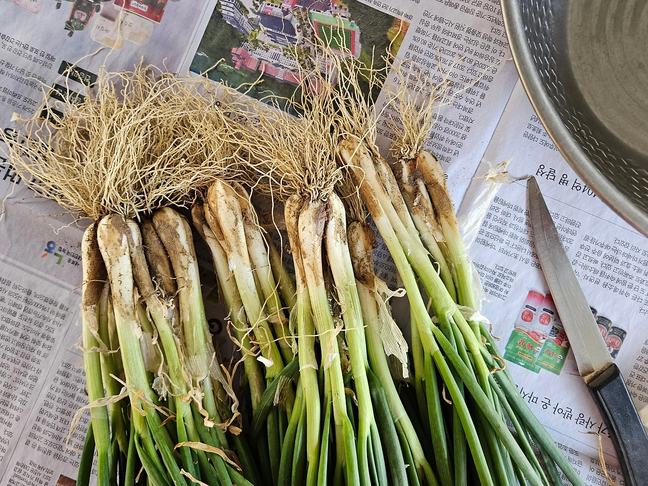 이른 가을에 심어준 쪽파는 늦은 가을 1차로 수확해서 김장에 사용한다. 김장에 사용하고 남은 쪽파를 밭에 그대로 남겨두면 겨우내 땅 위의 잎은 얼어 시들어 버리기 때문에 얼핏 모두 얼어 죽었다고 생각할 수 있다. 하지만 땅 속의 뿌리 부분은 여전히 살아 있기 때문에 이듬해 봄 다시 싹을 틔운다. 그러니까 지금 먹고 있는 쪽파는 겨울을 지내고 봄이 되어 다시 자라난 것들이다. 좀 더 먼저 알고 관심을 가졌으면 봄이 되어 새로 자라나는 쪽파라도 만날 수 있었을 텐데 밭 한쪽에서 열심히 크고 있는데도 모르고 지나버린 순간들이 뒤늦게 아쉽다.