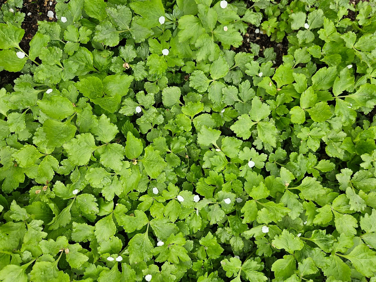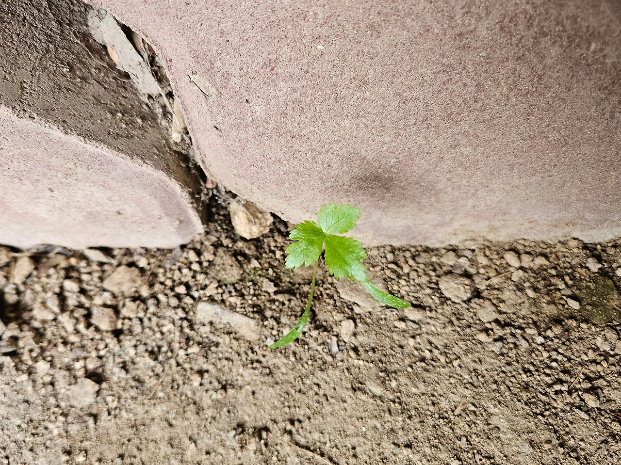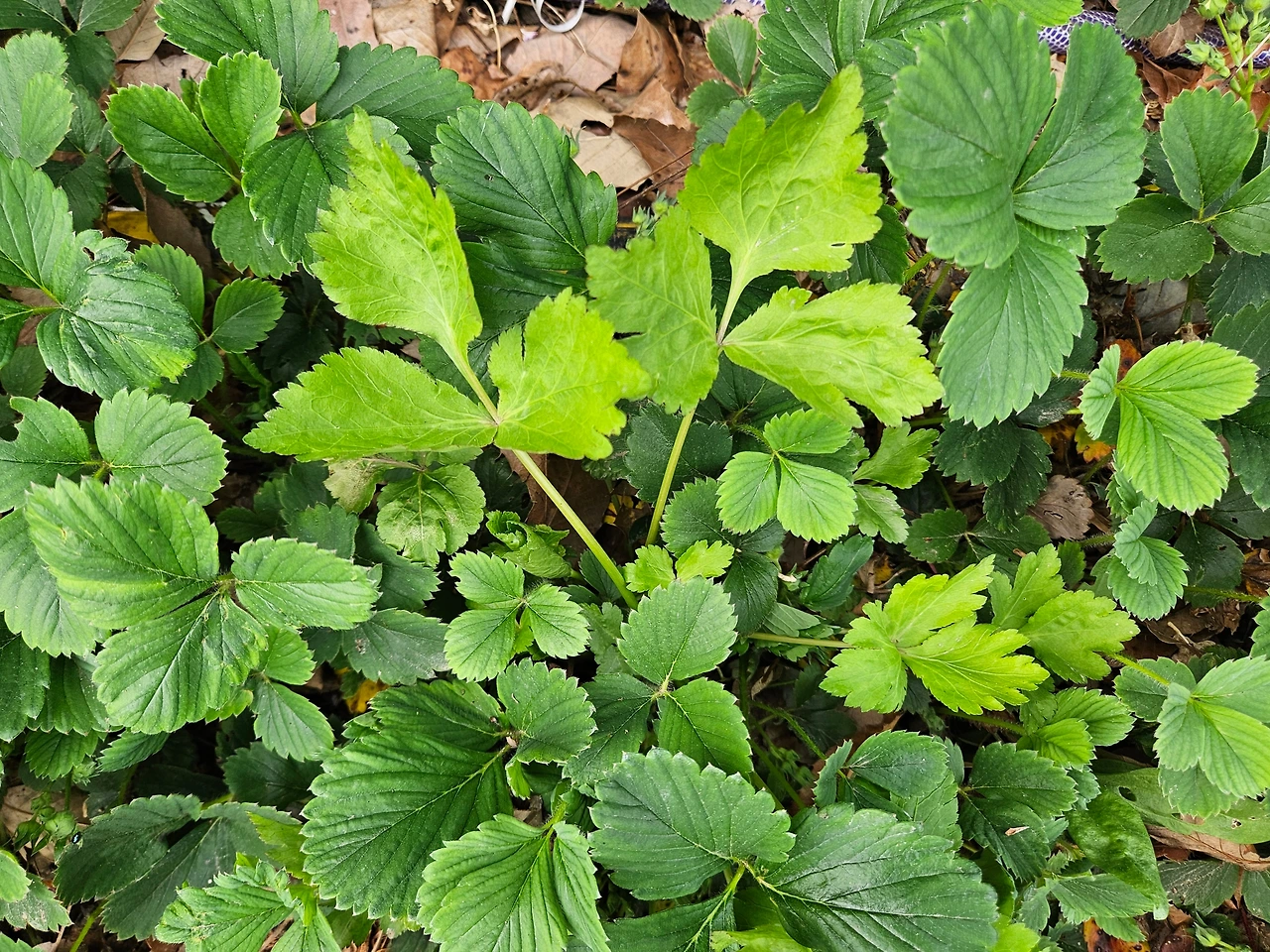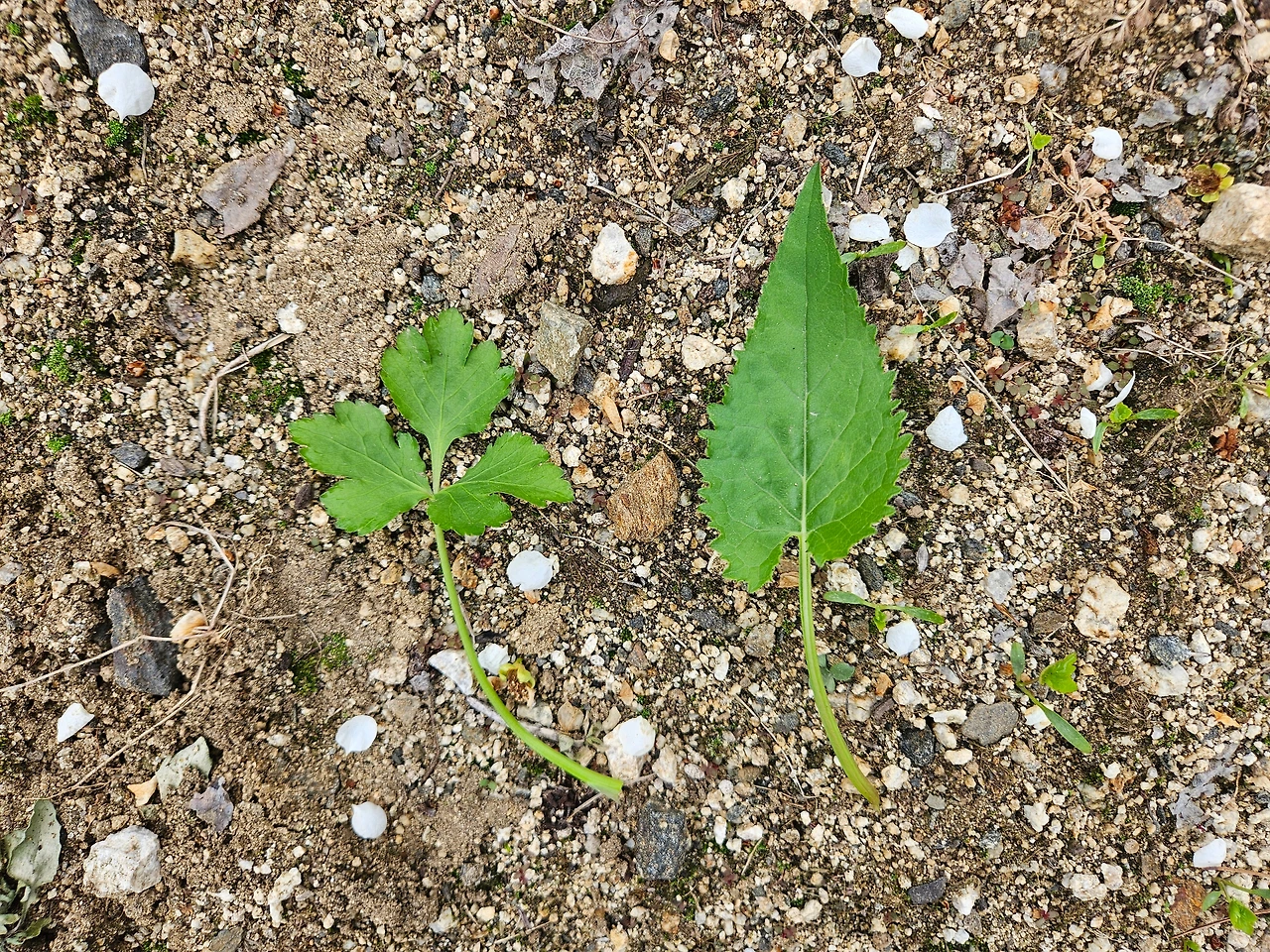 그 뒤로 숨은 그림 찾기 게임을 하듯 곳곳에 숨어 있는 참나물 찾기 게임이 시작되었다. 놀랍게도 참나물은 정말 어디든 갈 수 있는 것처럼 보였다. 점심을 먹고 정리하다가 하우스 옆 경계석 틈에서 이제 막 발아한듯한 아주 작은 참나물을 발견했다. 그야말로 이제 막 발아한 아주 작은 개체라 세 갈래로 갈라진 본잎과 다르게 가늘고 길쭉한 떡잎까지 볼 수 있었다. 저물어 가는 해를 보며 하던 일을 정리하고 집에 갈 채비를 하던 중에는 딸기 밭 사이에 꼭꼭 숨어 있는 것도 발견했다. 세 갈래로 갈라진 톱니 달린 잎이 얼핏 보면 딸기 잎과 비슷했지만 뭔가 낯선 느낌이 들었다. 자세히 보니 이 역시 참나물이었다. 비슷한 잎 사이에 잘 숨어서 눈에 띄지 않은 덕에 부쩍 자란 모습이었다. 그래, 이번 판은 좀 어려웠다. 참나물의 엄청난 숨기 실력을 인정할 수밖에 없었다.