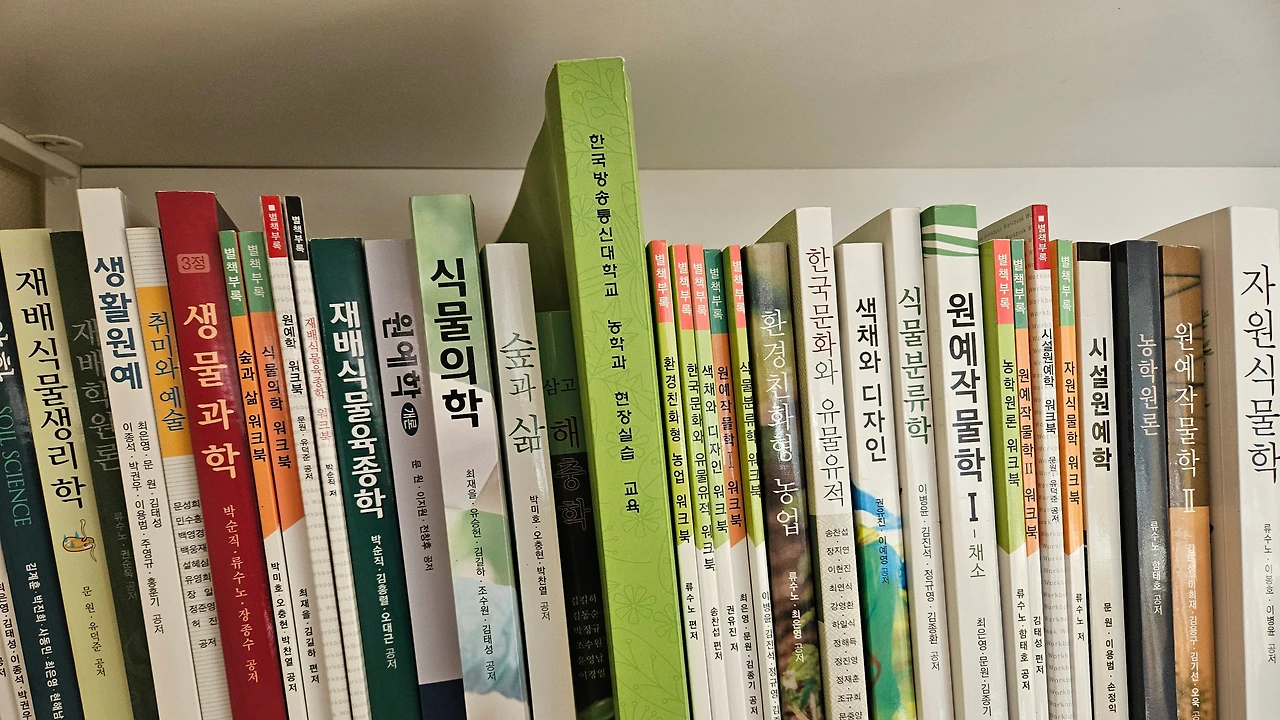 꿈에 부풀어 입학한 첫 학기는 모든 게 곤욕스러웠다. 직접 마주하지 않고 대부분이 온라인으로 진행되는 시스템에 적응해야 하는 건 물론이고, 무엇보다 가장 힘들었던 건 학문적으로(굳이 어려운 말로) 쓰인 모든 어려운 단어들을 마주하는 것이었다. 쌍떡잎식물은 쌍자엽식물이라고 불리고, 피자식물 현화식물은 모두 속씨식물을 부르는 말이며, 기수우상복엽, 우수우상복엽과 같은 말은 무슨 암호를 듣는 것 같았다. 원래 알던 것도 모르게 하는 수많은 어휘들 때문에 매번 농업 용어 사전*을 찾아보느라 수업 진도는 한없이 늘어질 수밖에 없었다. 광합성의 화학반응식이 그렇게 복잡한 줄 처음 알았고(참고로 6CO₂+6H₂O+빛 에너지 → C₆H₁₂O₆+6O₂이다.) 심지어 해충방제학과 식물의학 수업을 들을 땐 온갖 벌레들의 사진을 자세히 보고 살펴야 했으니 대체 무슨 생각으로 이 공부를 하겠다고 한 건지. 매일 공부하고, 매일 후회했다.