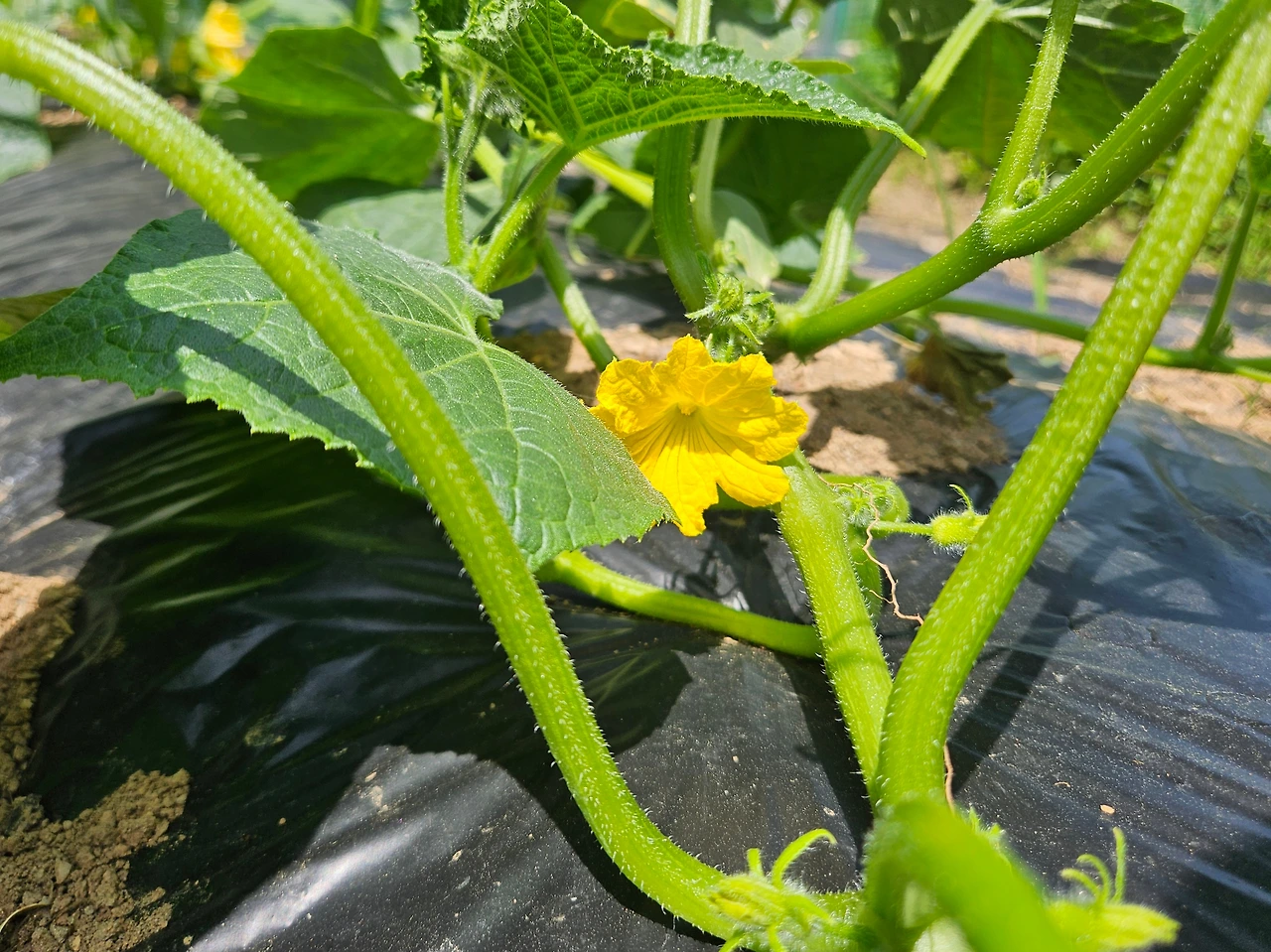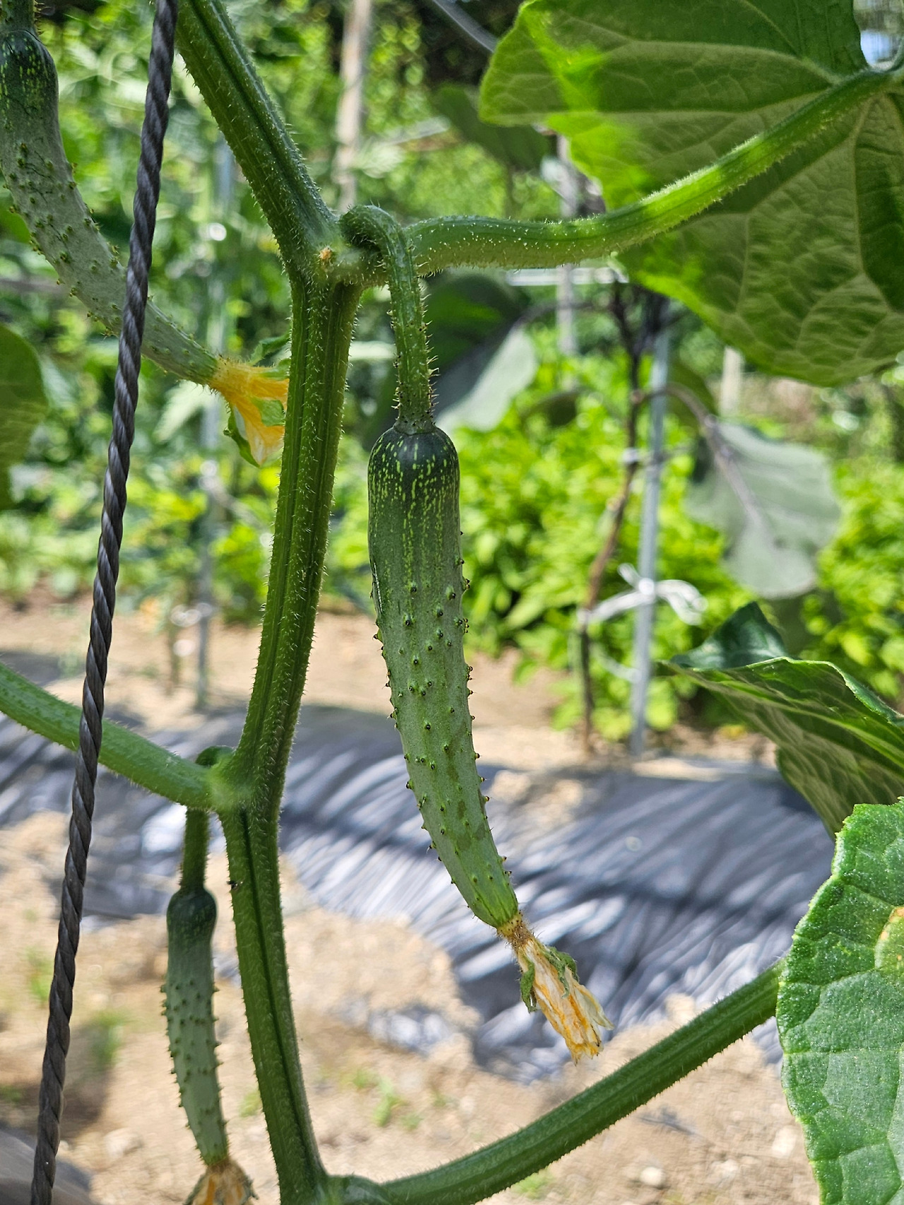 보통 오이는 지지대를 세워주고 위로 올려 키우지만 노각은 넓은 곳에 심어 바닥을 기며 크도록 두었다. 지지대에 묶어주는 것만으로도 충분히 잘 버티는 애오이와 달리, 노각은 너무 크고 무거워서 지지대만으로 그 무게를 감당할 수 없기 때문이다. 이렇게 키우면 더 안정적으로 자라고, 크고 굵게 자라는 열매에도 부러질까 하는 걱정이 없지만 위로 올려 키우는 것보다 훨씬 넓은 땅이 필요하다. 그러고 보면 엄마도 노각에게 훨씬 큰 땅을 내어주는 걸 보니 노각을 편애하는 건 나뿐이 아닌가 보다.