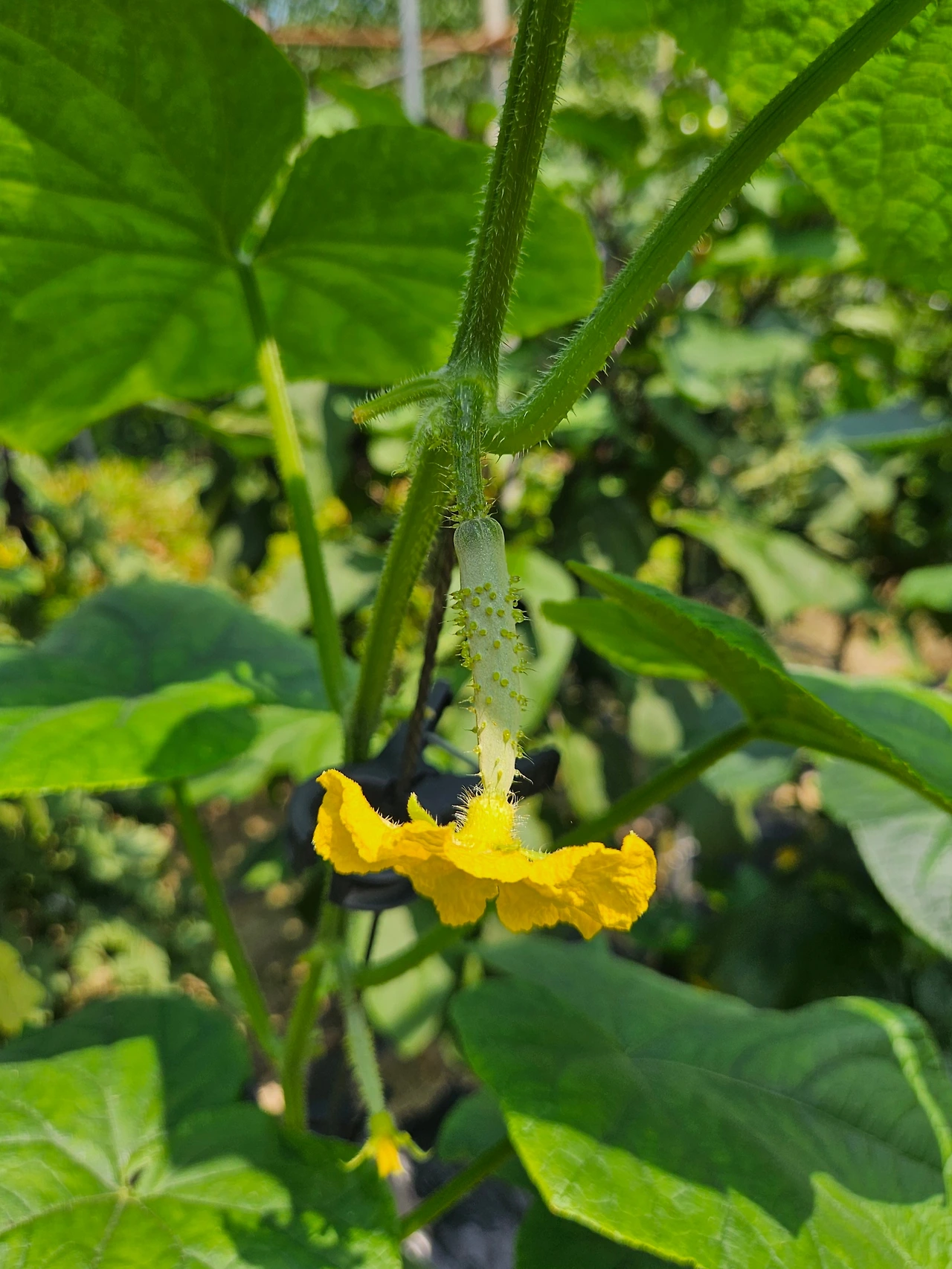 원래 오래 보면 더 정이 들게 마련이라 씨앗부터 심어서 떡잎 나오기를 기다리고, 그 모종을 밭으로 옮겨 심은 노각과 모종부터 사다 심은 오이 사이에 애정도의 차이가 생기고 말았다. 내가 무엇을 더 맛있게 잘 먹냐에 따른 것보다 순전히 오래 키우고 관찰했다는 이유에서 생긴 애정이다. 모종부터 키운 건 다 커서 온 거라 내가 키운 거 같지 않달까. 덕분에 내 사진첩에는 일반 오이의 사진은 몇 없고, 노각 오이의 성장 사진만 가득해졌다.