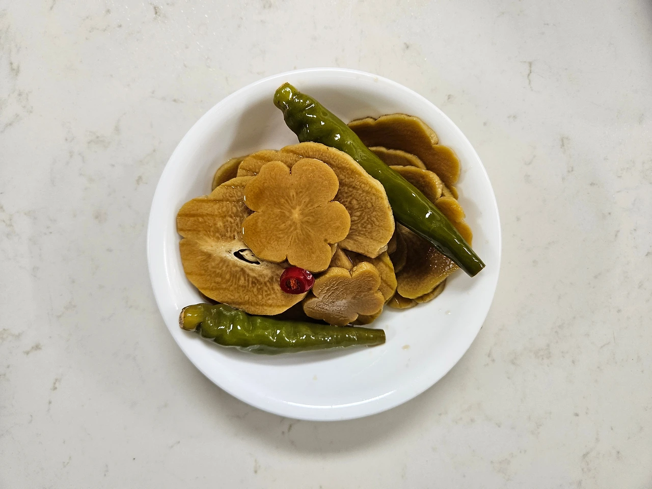 올록볼록한 모양 그대로 슬라이스 해놓으니 꽃 모양 같기도 구름 모양 같기도 했다. 이때 이미 매니저(나를 얘기하는 것이지만 그 어떤 힘도 없다.) 면접은 통과했다. 맛은 어떤지 모르겠지만 그냥 신기하고 예쁘니 키우고 싶었다. 그렇게 담근 차요테 장아찌는 바로 먹어도 아삭하고 짭짤하니 맛있었다. 그대로 임원 면접도 통과했다.
