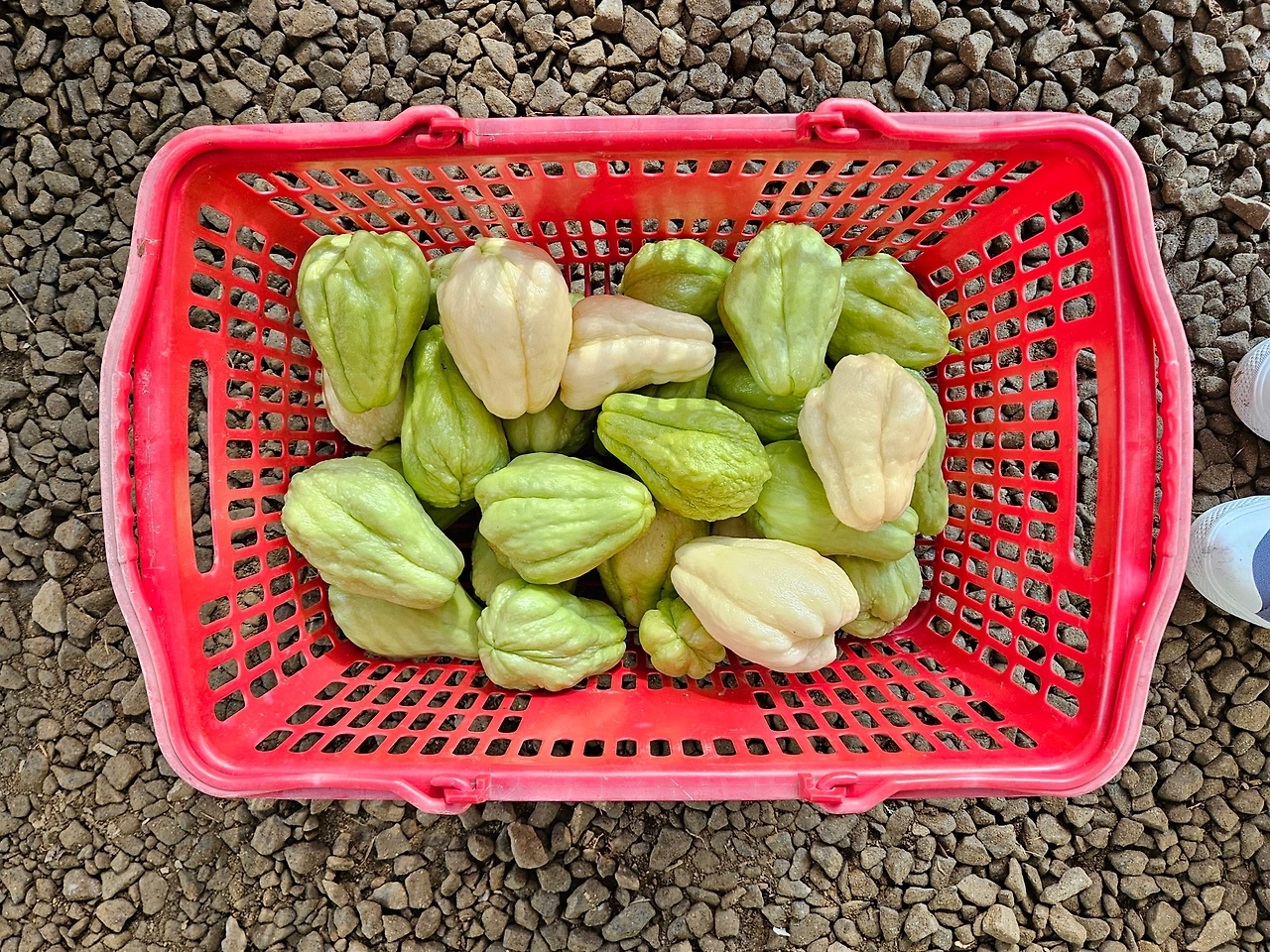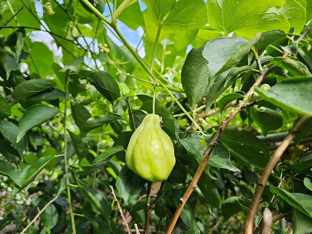 시간이 지나자 열매도 하나씩 보이기 시작했다. 차요테는 수확 시기가 늦으면 금방 껍질이 단단해져 그전에 수확하는 것이 중요하다. 그런데 또 충분히 과육을 키우기 전에 따면 먹을 부분이 적어지니 그 타이밍을 잘 맞춰야 한다. 적기에 딴 차요테는 껍질을 벗기지 않고 먹지만 너무 여문 것은 이 울퉁불퉁한 열매의 골을 따라 껍질을 깎아내는 것부터 곤혹이다. 뭐든 과유불급이라고, 욕심을 좀 버리고 차라리 조금 덜 여문 열매를 따는 게 낫다.