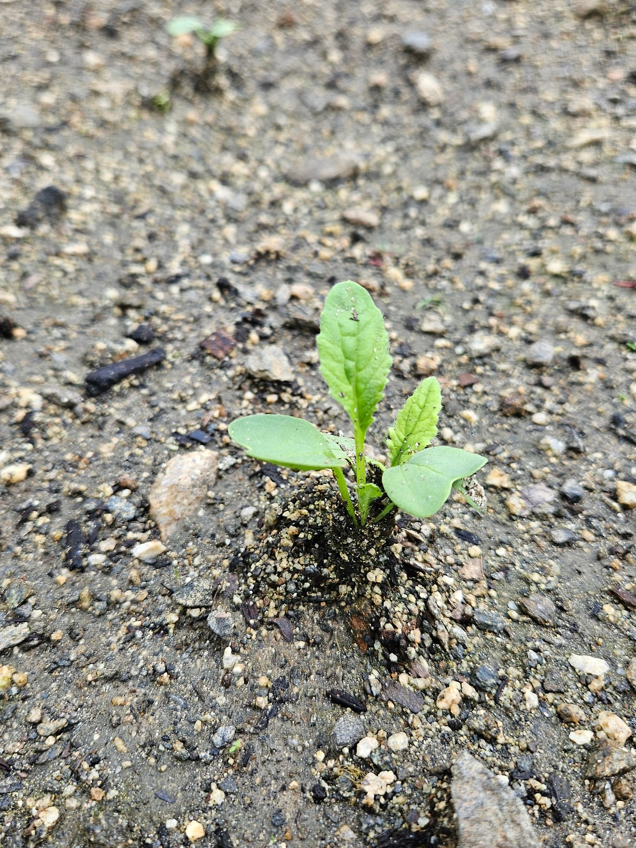 심고 며칠 만에 싹이 올라왔다. 어떻게 이렇게 빨리 올라왔나 신기해했는데 원래 무의 발아기간이 4~7일로 짧은 편이라고 한다. 우리 밭에서도 약 4일 만에 올라왔으니 그중에서도 빠른 편이기는 하다. 씨앗부터 심어서 키울 때 가장 신기한 건 본잎의 모양과 다른 떡잎을 만날 때이다. 전에 공심채를 심었을 때 그 떡잎도 길쭉하게 뻗은 본잎의 모양과 너무 달라서 신기했는데 무도 마찬가지였다. 그런데 이상하게 뭔가 조금 낯익다. 가만히 들여다보며 생각하니 무순이잖아! 무의 잎이라고 생각하니 낯선데 무순이라고 생각하니 너무나도 익숙한 모습이었다. 물론 우리가 무순으로 먹는 건 키를 쑥 키운 모습이지만 그 끝에 달린 잎의 모양이 너무나도 무순이다. 이제 생각하니 이름부터 "무의 순, 무순"인데 바로 알아차라지 못하다니. 1년이나 농사를 거들어 놓고도 아직 식탁에서의 모습과 흙에서의 모습을 매칭하는 게 어려울 때가 있다.