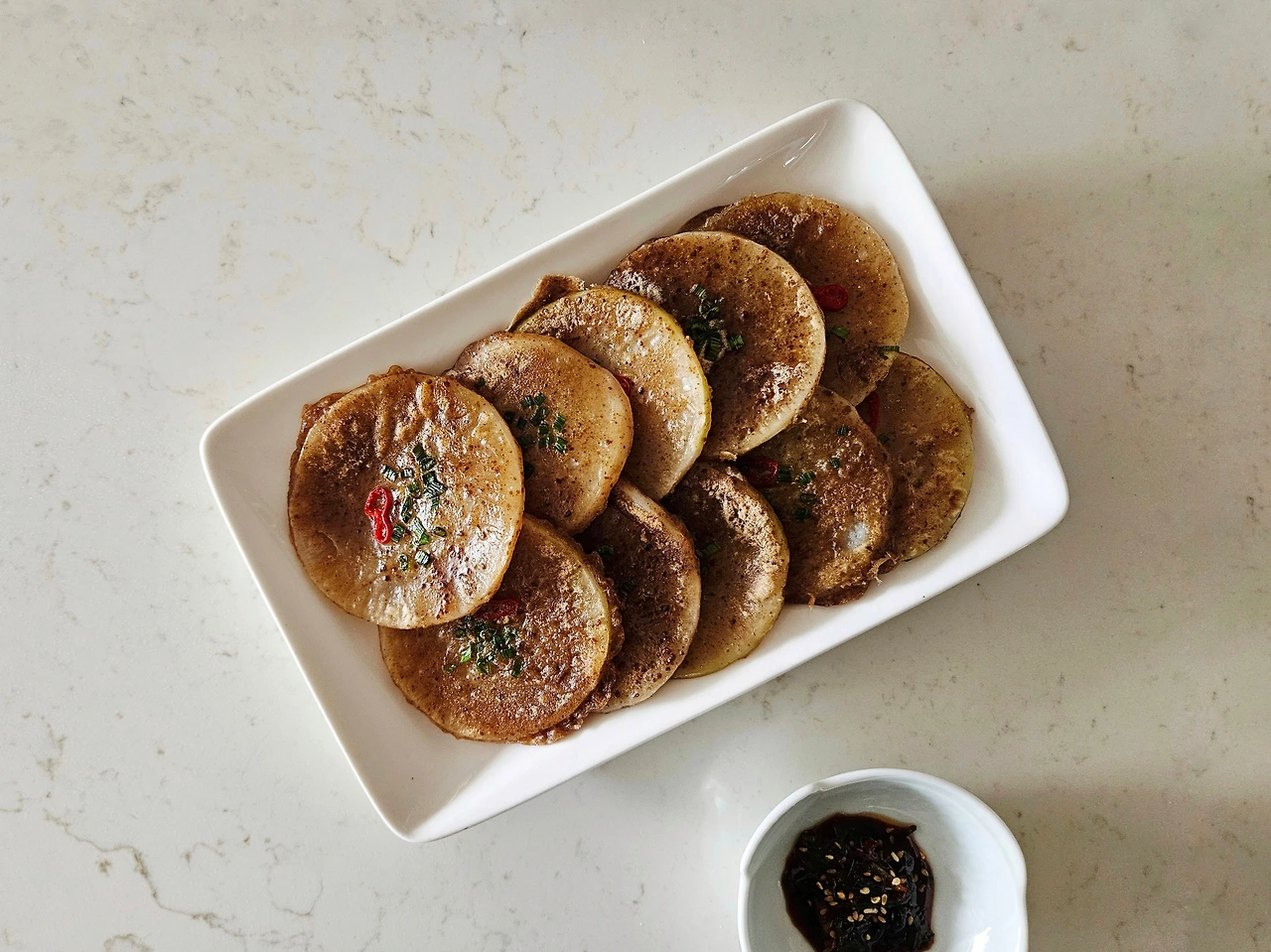 3. 너무 밋밋해서 모양을 내고 싶다면 쪽파와 홍고추를 얹어준다.